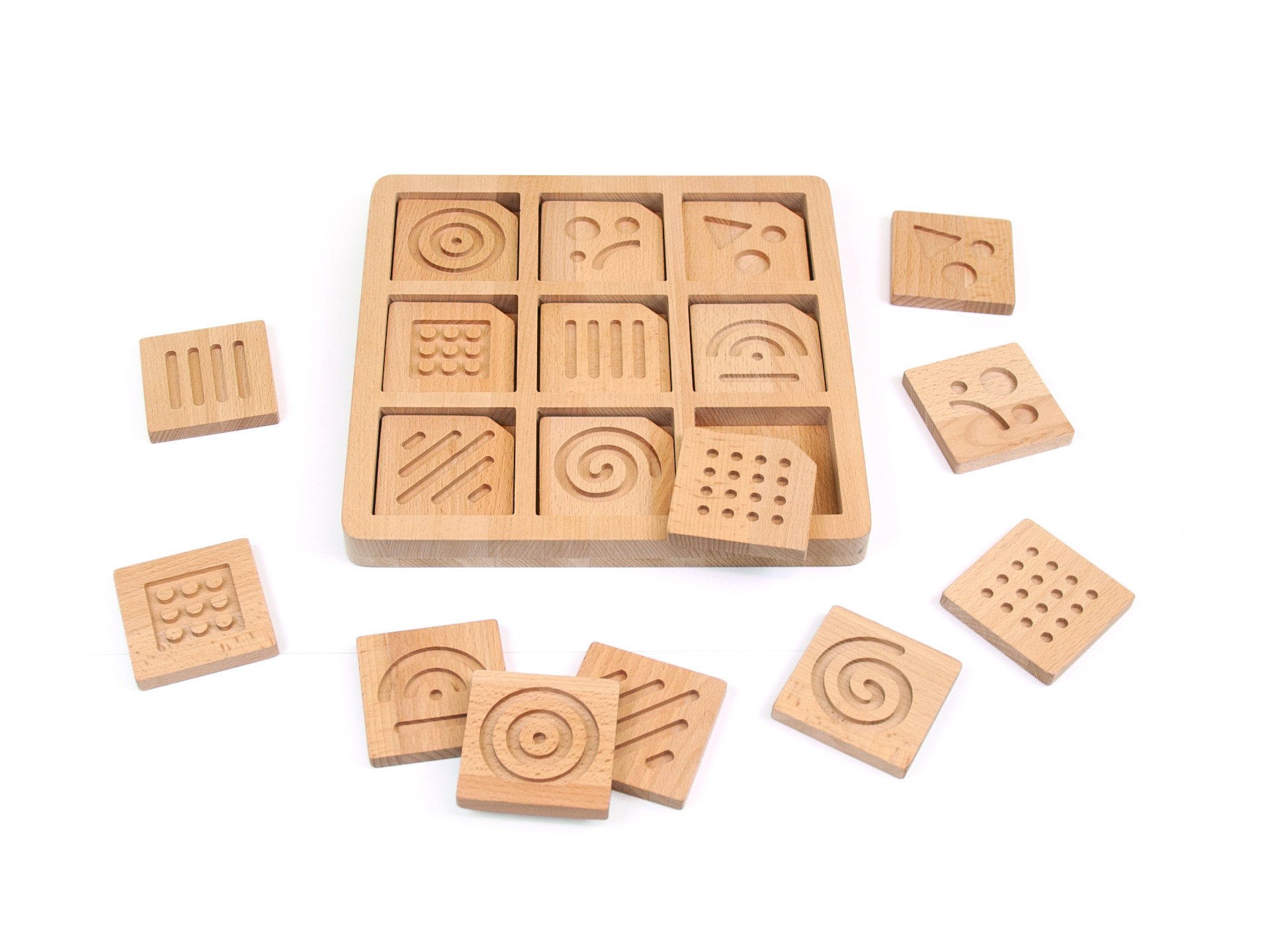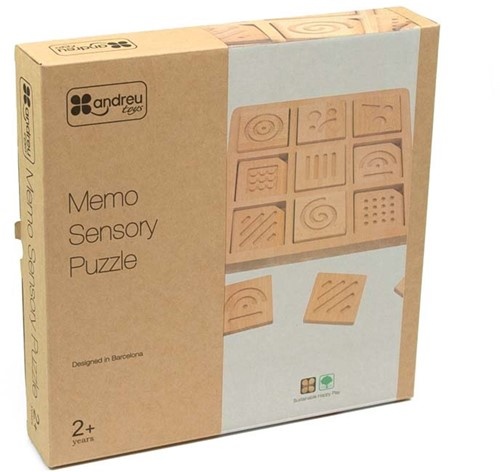 Ontdek de Sensorische Memorie van Andreu Toys: een veelzijdige spel waar kinderen op verschillende manieren mee kunnen spelen. Ze kunnen blokken met hetzelfde patroon zoeken, voelen en zelfs een spelletje memorie spelen.