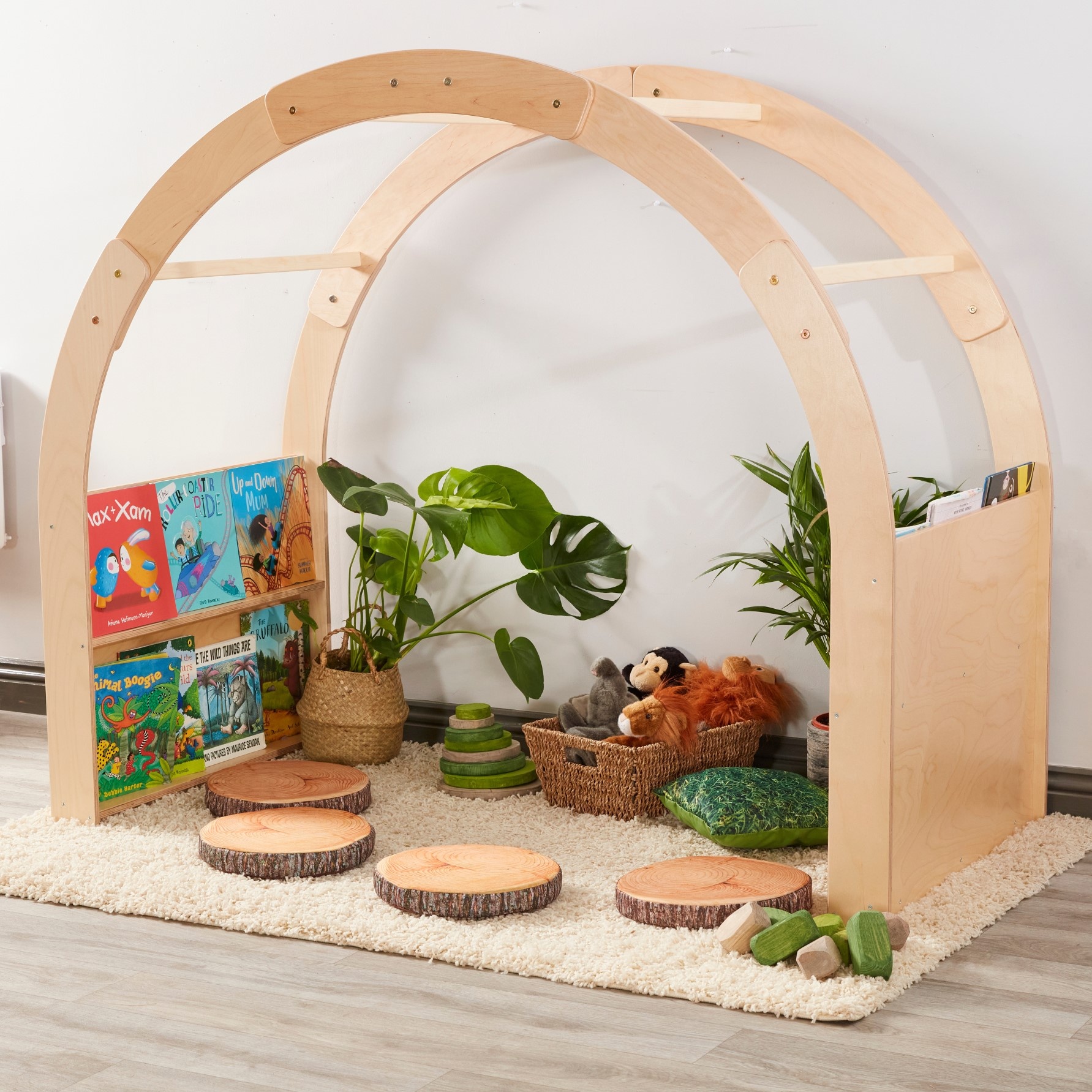 De antroposofische speelboog van Cosy is een natuurlijk vormgegeven element dat uitnodigt tot vrij spel en creativiteit. Gemaakt van massief hout met een rustige uitstraling, past hij in elke speelhoek voor zowel kinderopvang als BSO. Jongere kinderen kunnen eronder liggen en ontdekken, terwijl oudere kinderen de boog gebruiken als basis voor fantasierijk spel, bijvoorbeeld als poort, hut of tunnel. De eenvoudige vormen en het open karakter stimuleren de verbeelding en zorgen voor een speelse, warme sfeer in de ruimte.