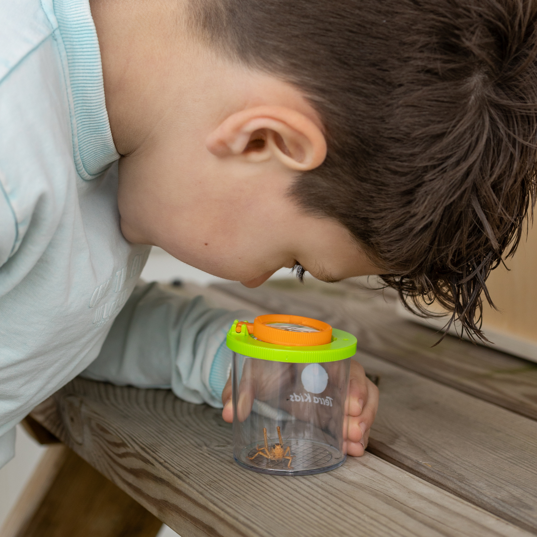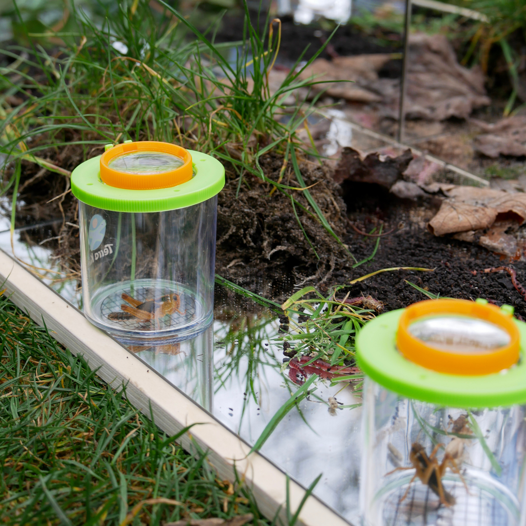 De praktische Terra Kids insectenpotjes van Haba zijn ideaal om onderzoeksobjecten in alle rust van alle kanten nauwkeurig te bekijken.