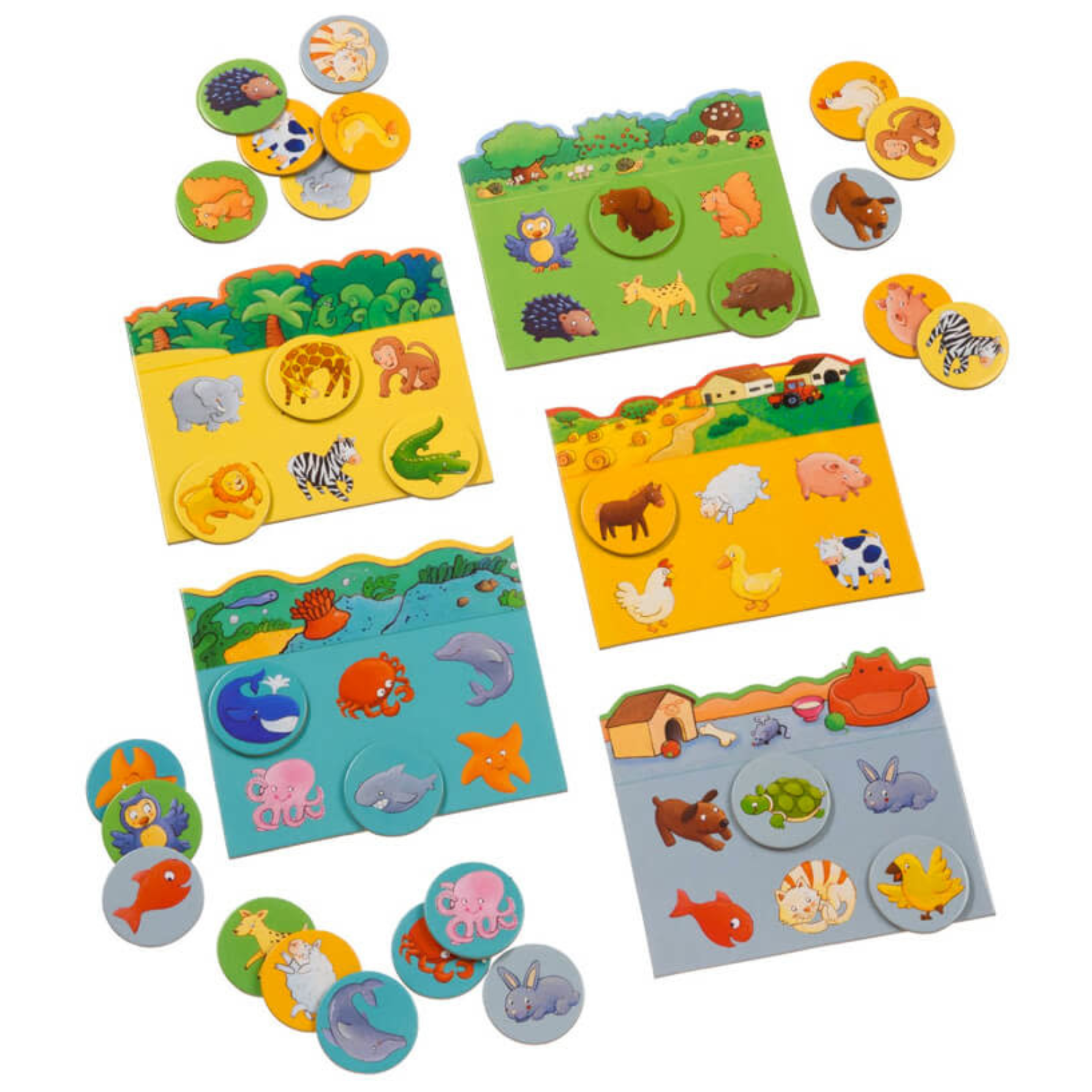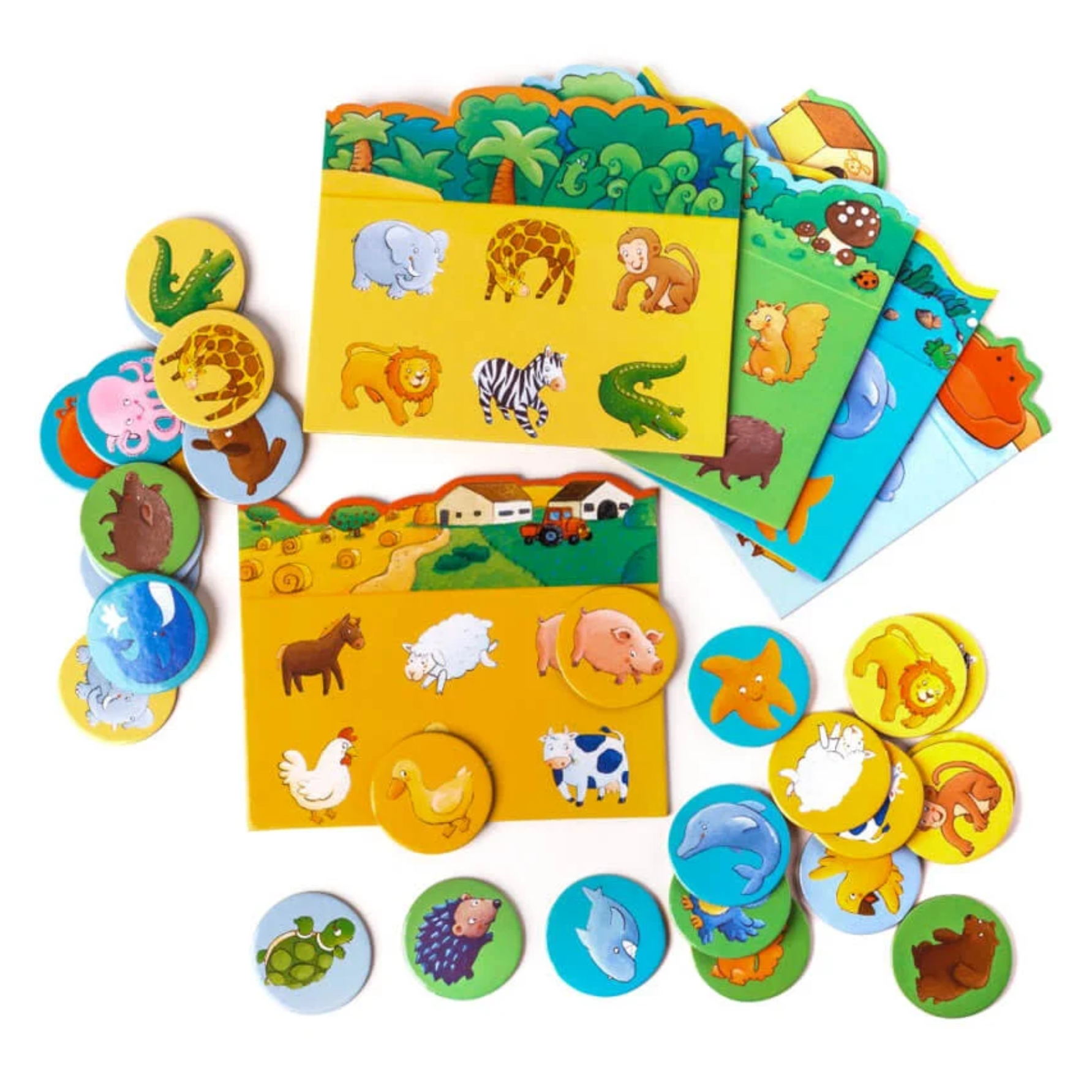 Bingo Dieren is een klassiek bingospel met een vrolijk dieren-thema, waarmee kinderen spelenderwijs hun concentratie, herkenning en woordenschat ontwikkelen. Door de juiste dierenkaartjes op het bijpassende speelbord te leggen, oefenen ze met kijken, luisteren en logisch nadenken.