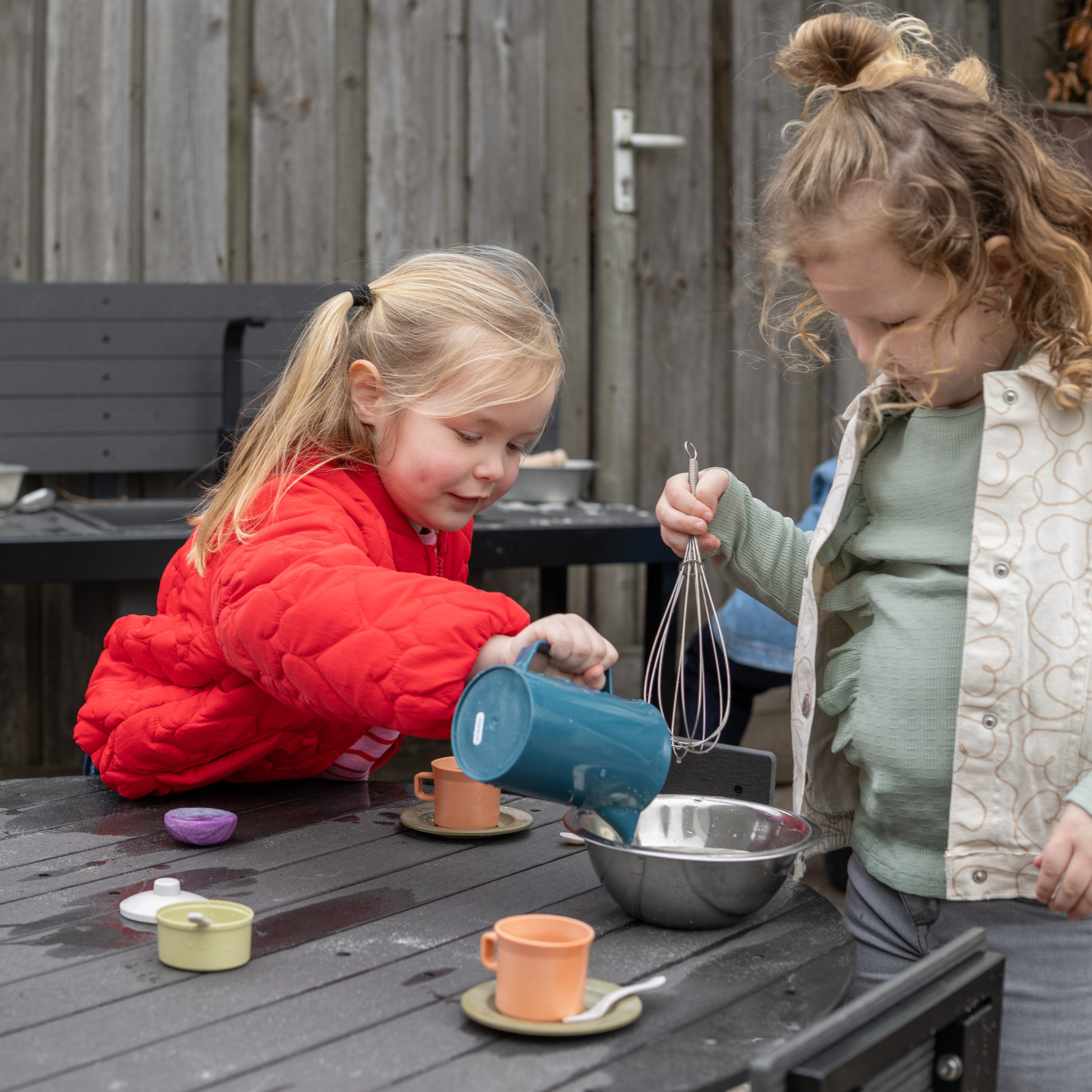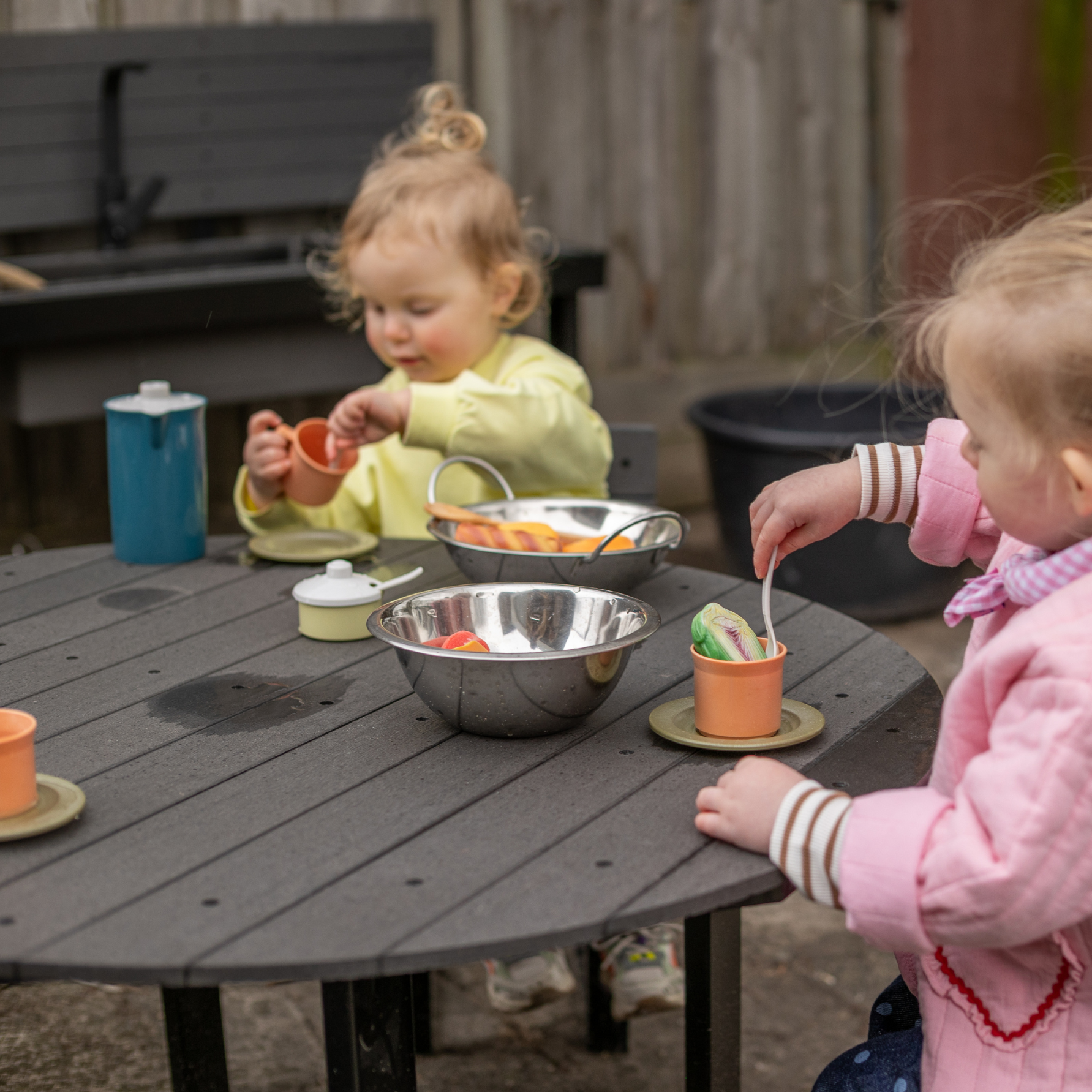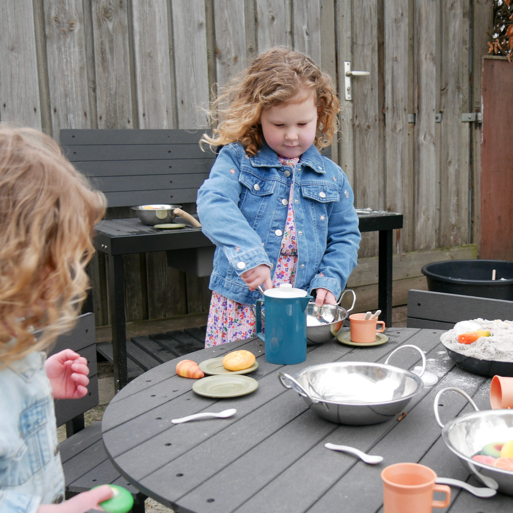 De theeset is ideaal voor rollenspel, waarbij kinderen gezellige theepartijtjes kunnen organiseren en hun verbeelding kunnen laten bloeien.