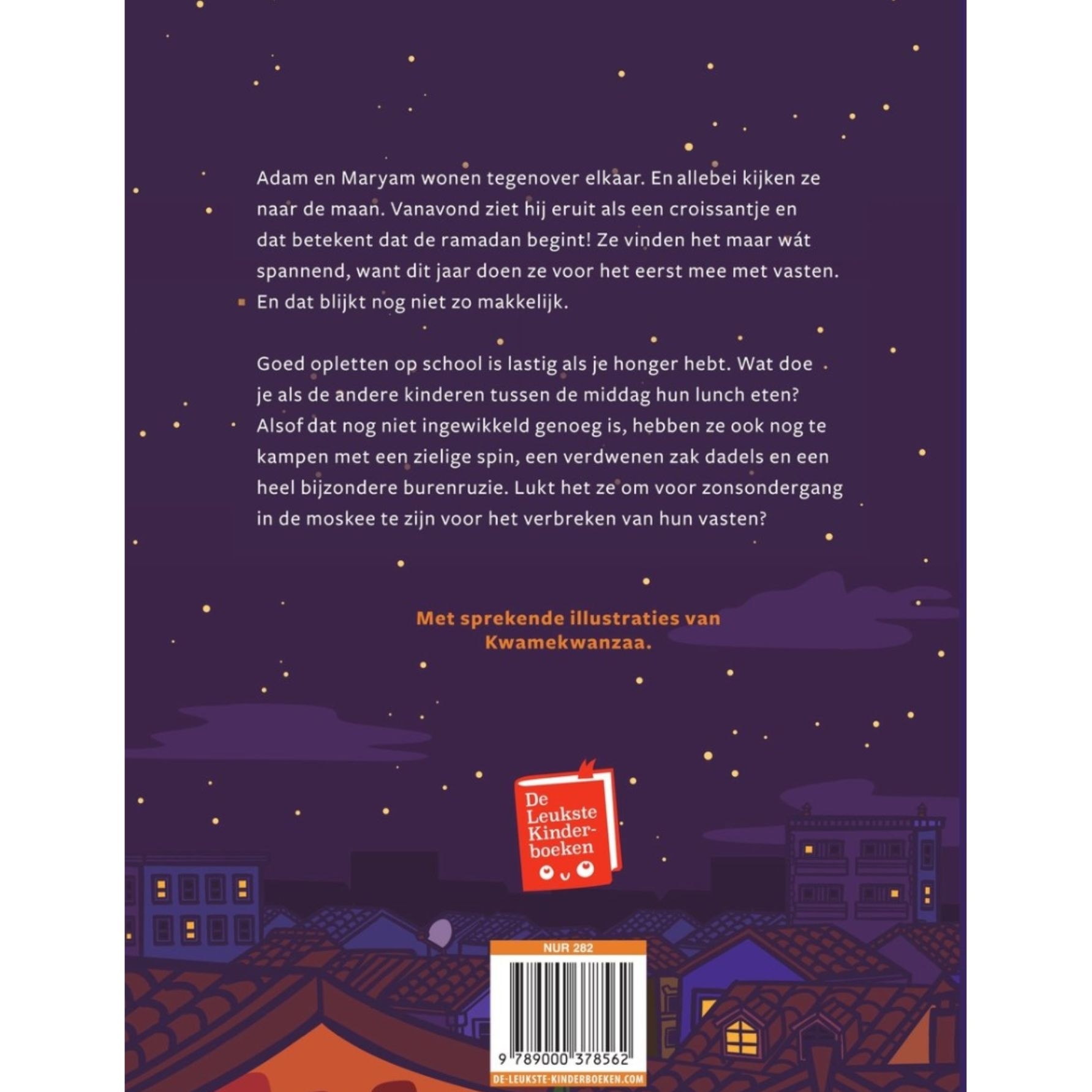 Adam en Maryam wonen tegenover elkaar. En allebei kijken ze naar de maan. Vanavond ziet hij eruit als een croissantje en dat betekent dat de ramadan begint! Adam en Maryam vinden het maar wát spannend, want dit jaar doen ze voor het eerst mee met vasten. Dat is nog niet gemakkelijk. Goed opletten tijdens de les is lastig als je honger hebt. En wat doe je in de pauze terwijl de andere kinderen tussen de middag hun lunch eten? Alsof dat nog niet ingewikkeld genoeg is, hebben de vrienden ook nog te kampen met een zielige spin, een verdwenen zak dadels en een wel heel bijzondere burenruzie. Lukt het ze om voor zonsondergang thuis te zijn voor het verbreken van hun vasten?