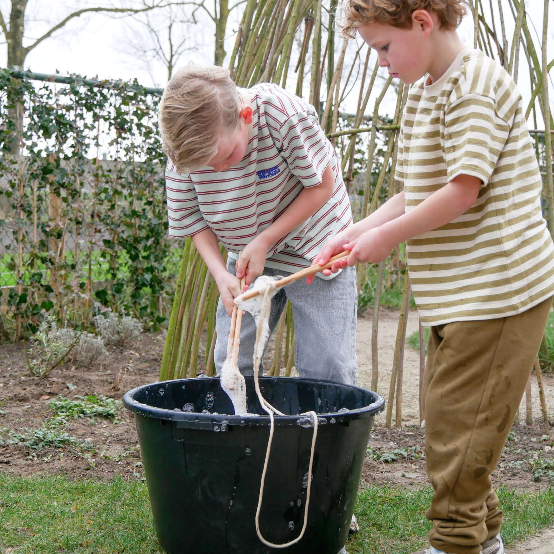 In deze Party Fun Editie zitten drie sets stokken, de stokken zijn ecologisch en daarnaast zitten er 6 zakjes met poeder voor 15 liter sop in en een handleiding in vier talen. Bubblelab is een bindmiddel dat je combineert met Dreft. (zelf groene Dreft toevoegen, gebruik hiervoor de Dreft van het merk Dreft voor gegarandeerd geslaagde bellen)