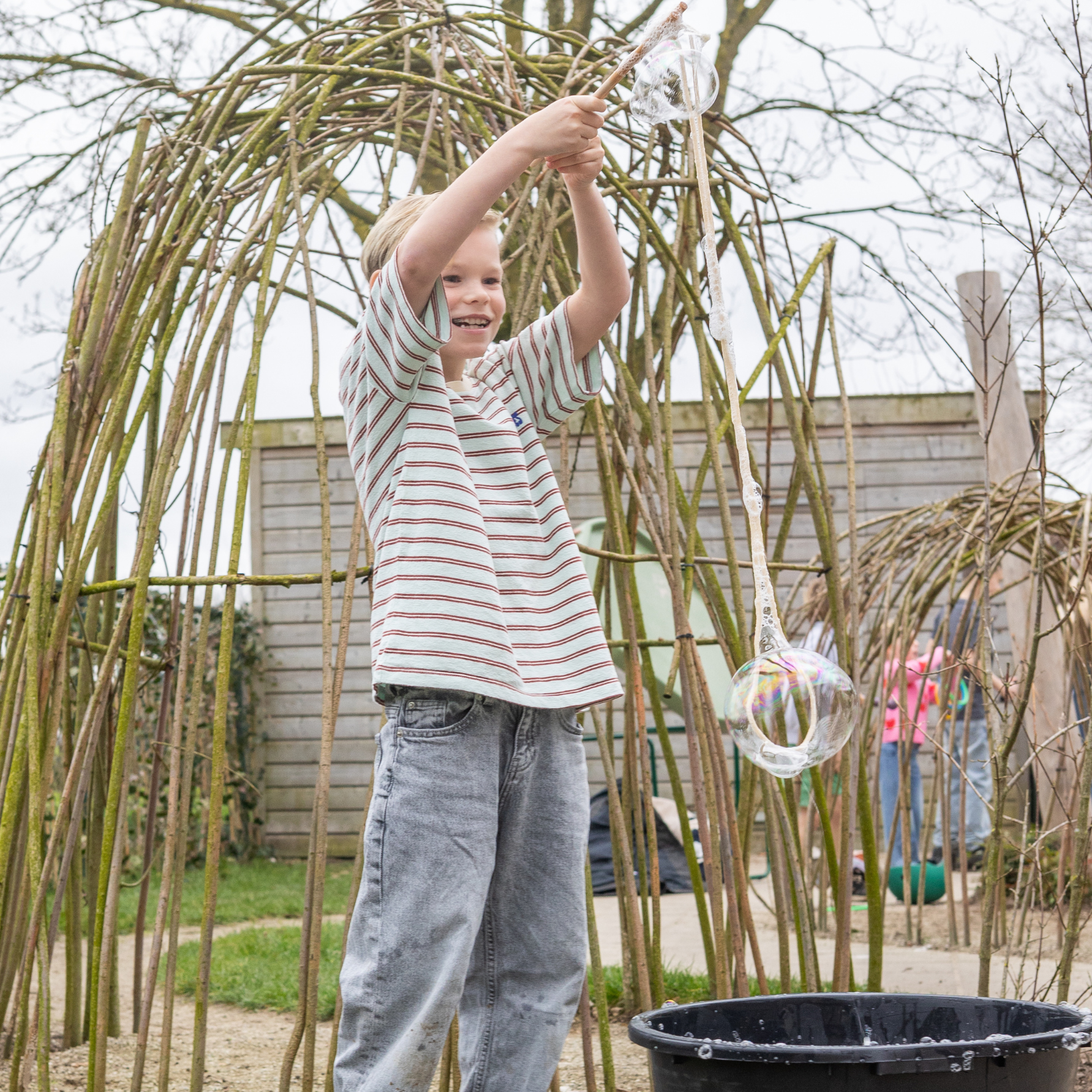 Spectaculaire meterslange en metershoge zeepbellen maken met deze Party Fun Editie van BubbleLab. Met deze bellenblaas wil iedereen zeepbellen maken, er achteraan rennen, proberen ze op te vangen en de bellen zo hoog mogelijk de lucht in te laten gaan. In de winter kun je er zelfs ijsbellen van maken en in het donker geven de bellen licht. Het is magisch!