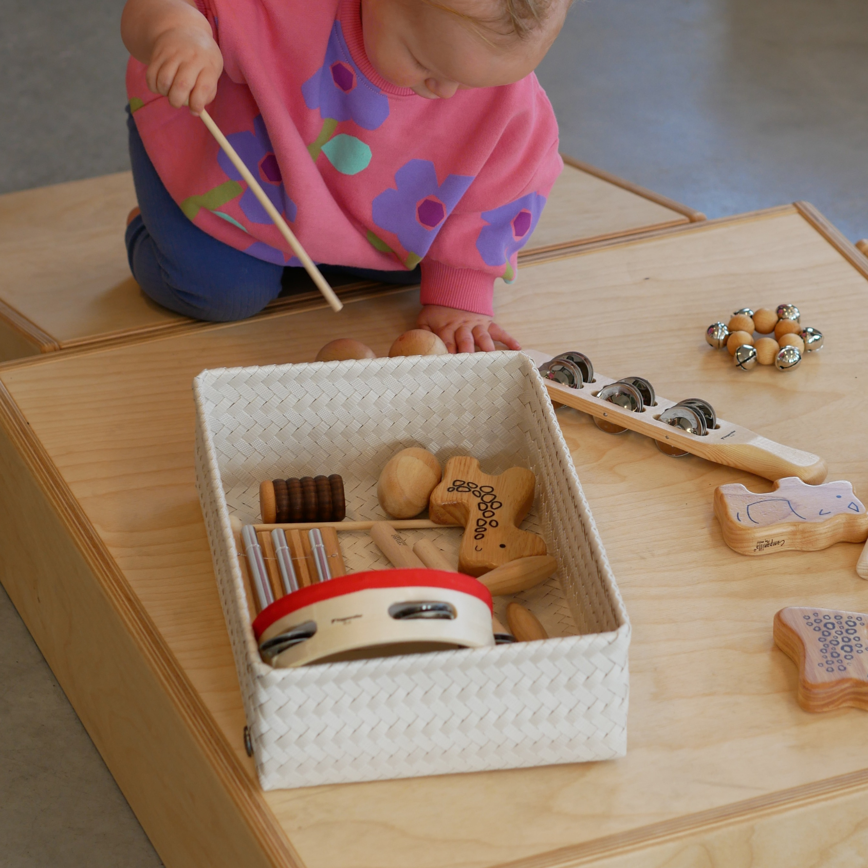 Handed By mandjes worden gemaakt van gerecyclede materialen, zoals plastic en bamboe. Ze zijn stevig en gaan lang mee, waardoor ze bestand zijn tegen dagelijks gebruik in de kinderopvang. Ze zijn bestand tegenvallen, stoten en slijtage, waardoor ze een duurzame keuze zijn voor opbergoplossingen.