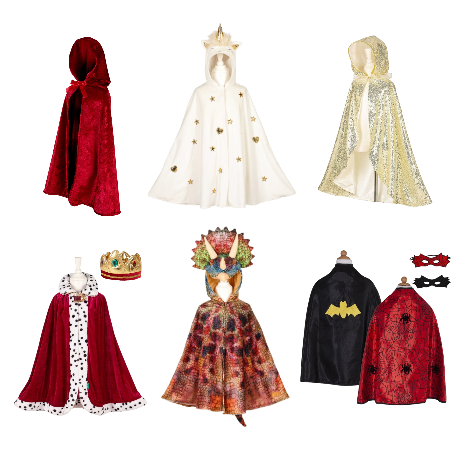 Capes zijn een populaire keuze voor verkleden vanwege hun symbolische en magische karakter. Ze geven kinderen het gevoel dat ze in de huid kruipen van een specifiek personage en versterken zo de beleving en betrokkenheid bij het rollenspel. Daarnaast bieden capes veel bewegingsvrijheid, waardoor kinderen comfortabel kunnen spelen en zich vrij kunnen bewegen terwijl ze in hun rollen opgaan. Ook kunnen kinderen de capes gemakkelijk zelf aantrekken wat ervoor zorgt dat zij niet uit hun spel hoeven te gaan.