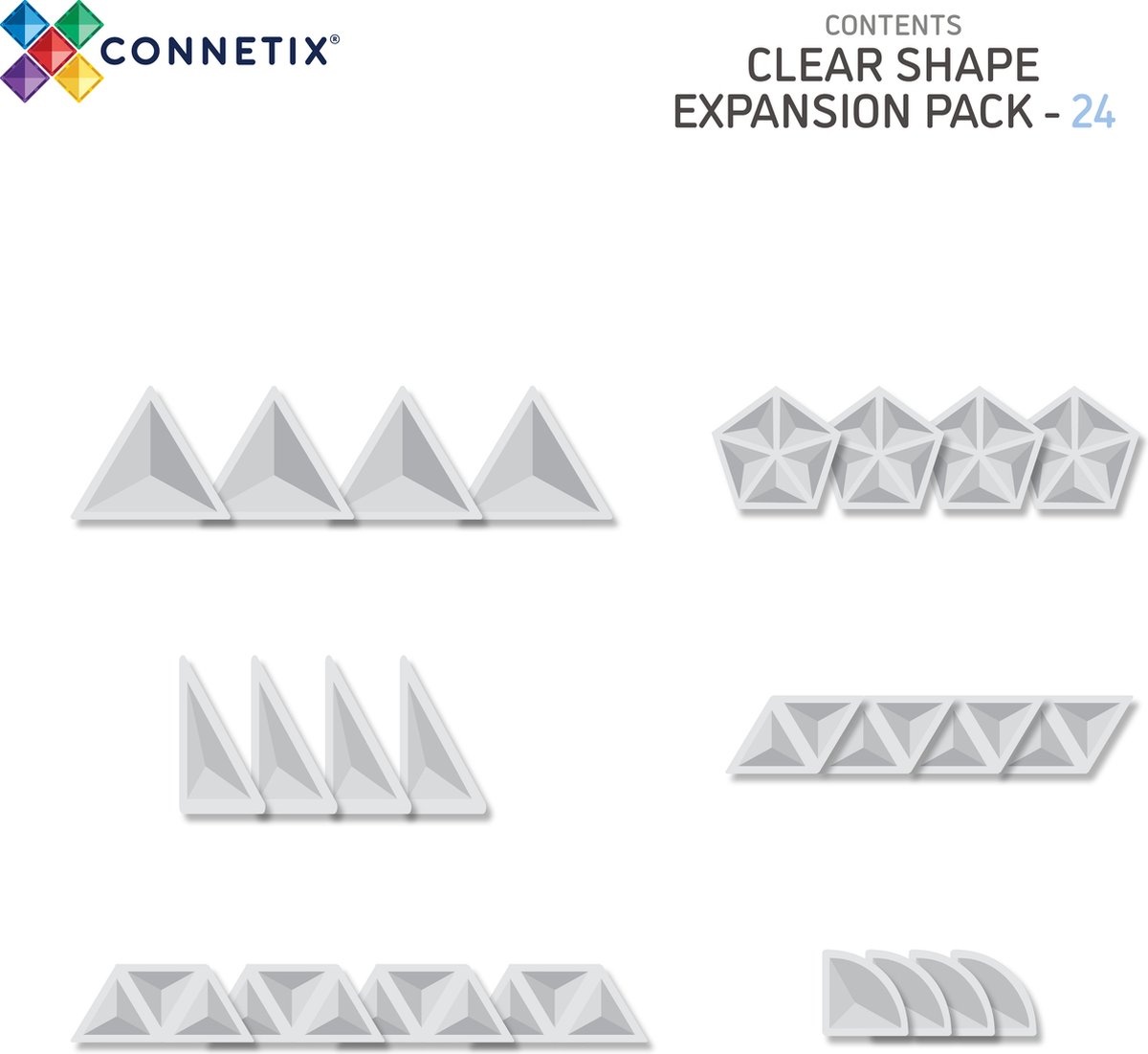 Connetix - Uitbreidingsset Vormen Transparant - 24-delig