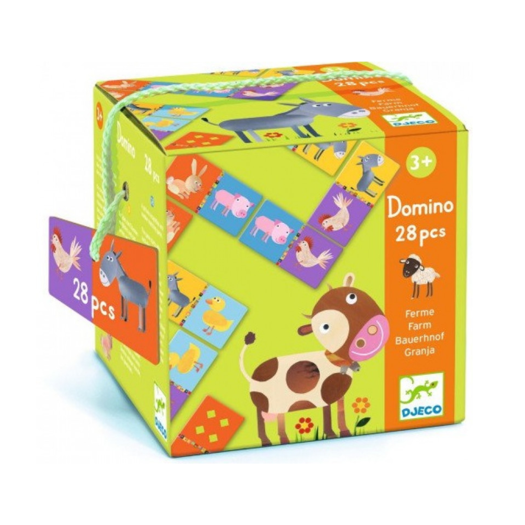 Domino Boerderijdieren is een eenvoudig en vrolijk dominospel waarbij kinderen boerderijdieren en kleuren leren herkennen en combineren. Het spel stimuleert logisch denken, concentratie en visuele waarneming, en de stevige kaarten zijn ideaal voor jonge kinderen.