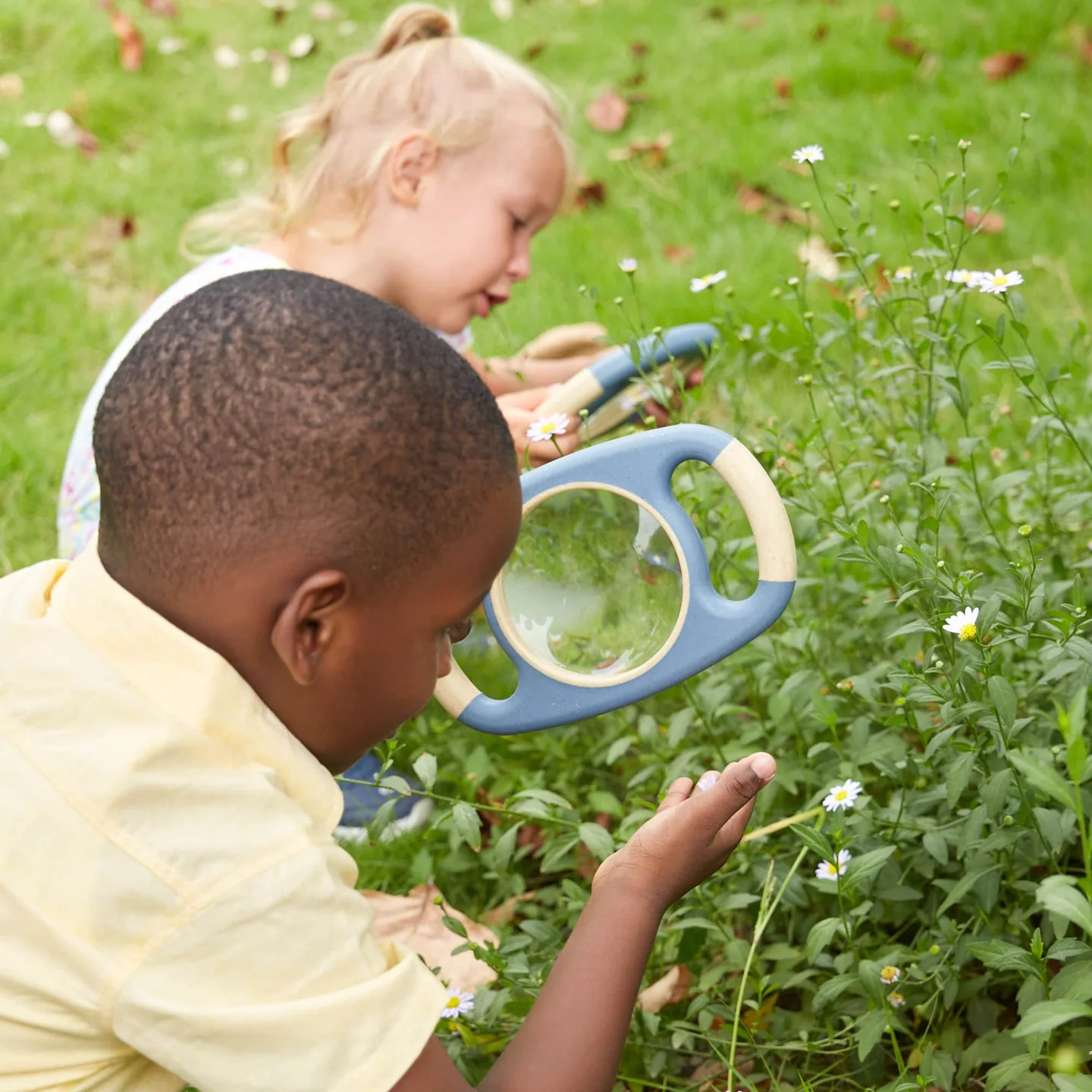 Het Easy Hold Vergrootglas van Guidecraft is speciaal ontwikkeld voor jonge ontdekkers. Dit vergrootglas heeft een stevig, kindvriendelijk ontwerp met twee handgrepen waardoor kinderen het gemakkelijk met beide handen kunnen vasthouden. De grote lens vergroot objecten vijf keer, waardoor kinderen insecten, bladeren, stenen en andere kleine ontdekkingen van dichtbij kunnen bekijken en onderzoeken. De krasbestendige glazen lens voelt aan als een echt wetenschappelijk hulpmiddel, maar is robuust genoeg om tegen een stootje te kunnen tijdens binnen- en buitenactiviteiten.