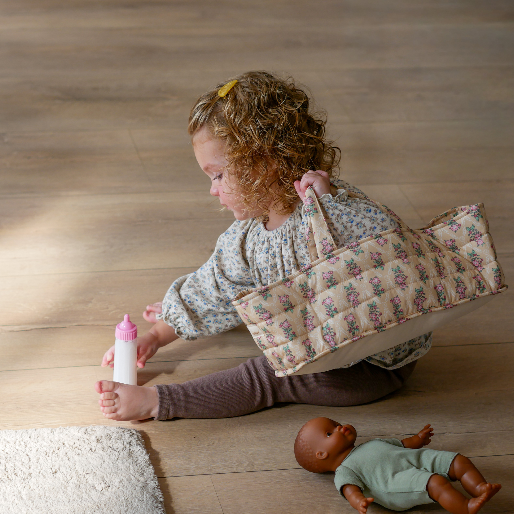 Leuke accessoire voor de uitzet van de Gordi poppen van Paola Reina en ook leuk te combineren met de andere poppen accessoires van Götz. Omdat het flesje tegen de mond aan wordt gezet en niet in de mond gestoken, past het op alle poppen.