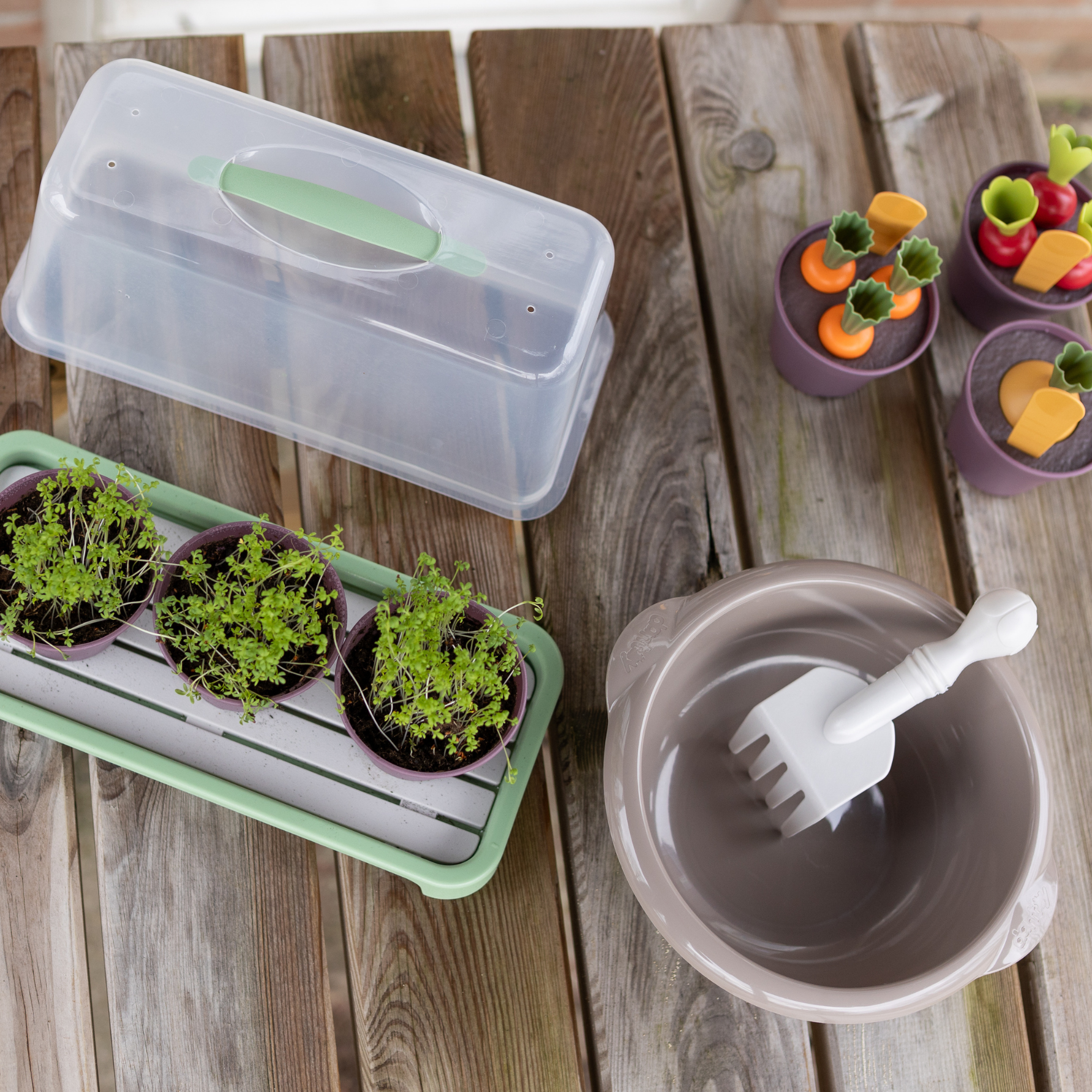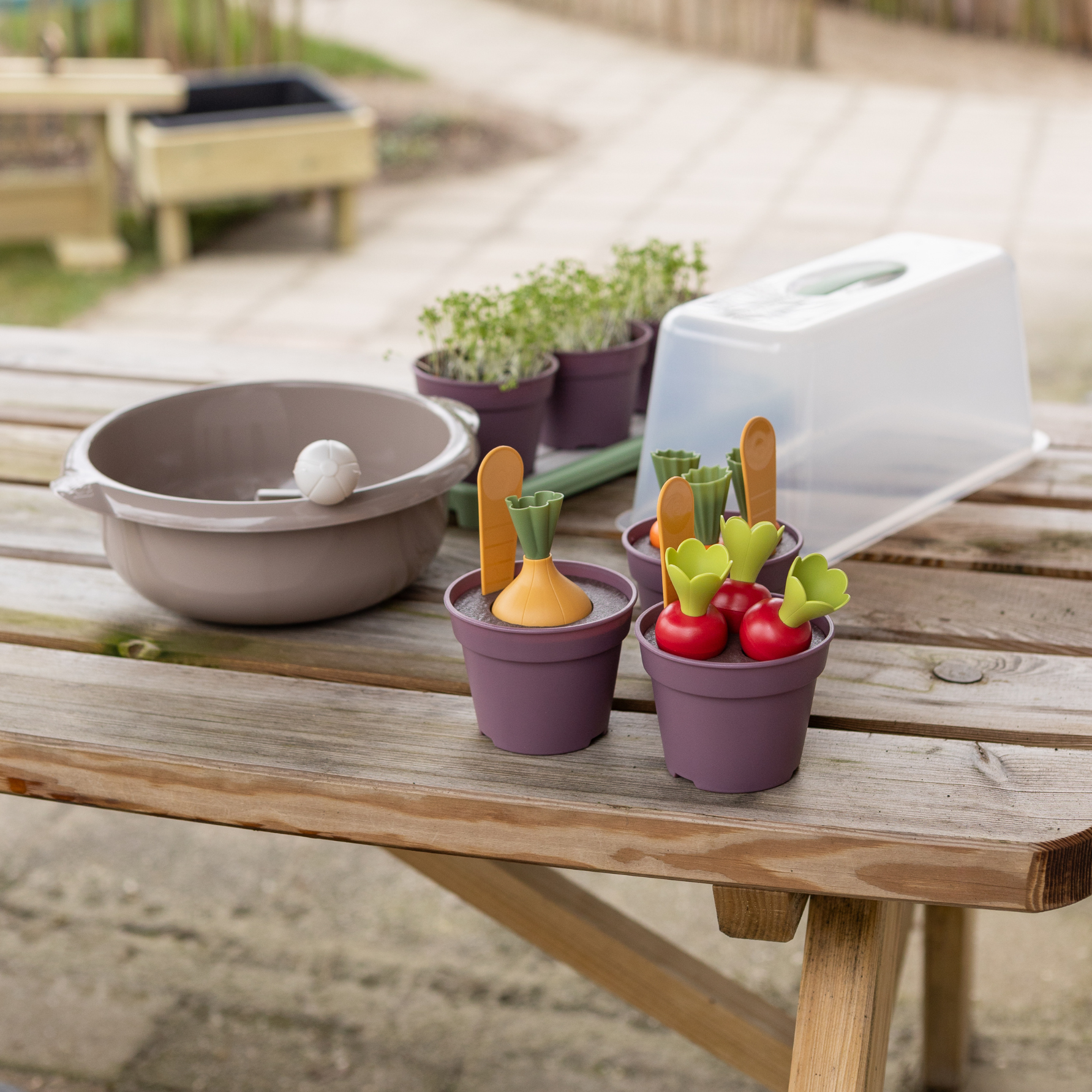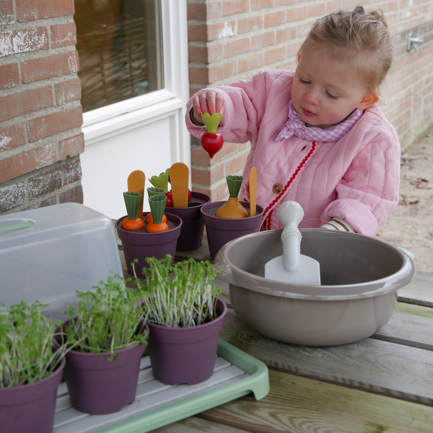 Deze duurzame en robuuste set is perfect voor kinderopvang en scholen. Kinderen ontwikkelen hun motoriek en leren samenwerken terwijl ze zaadjes planten, water geven en de natuur ontdekken. Bovendien is het materiaal vaatwasserbestendig, waardoor schoonmaken eenvoudig is.