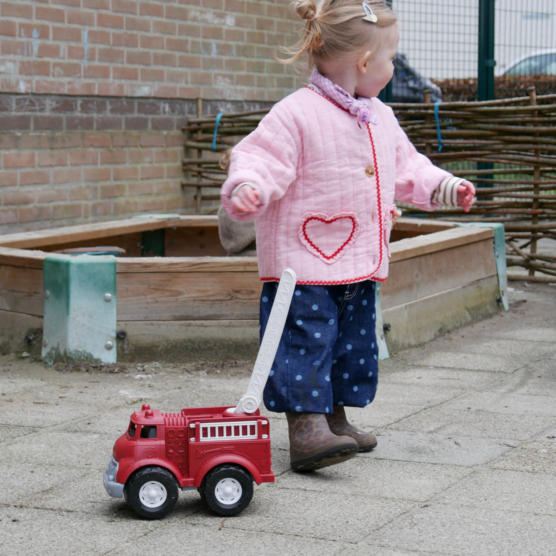 Deze brandweerauto kan gebruikt worden bij het binnen spelen of bij het buiten spelen in de zandbak. Kinderen kunnen uren speelplezier hebben met deze leuke brandweerauto, hun ruime fantasie zorgt vaak voor de leukste avonturen.