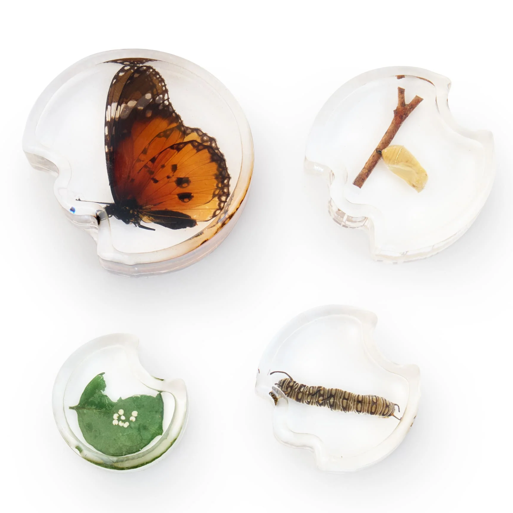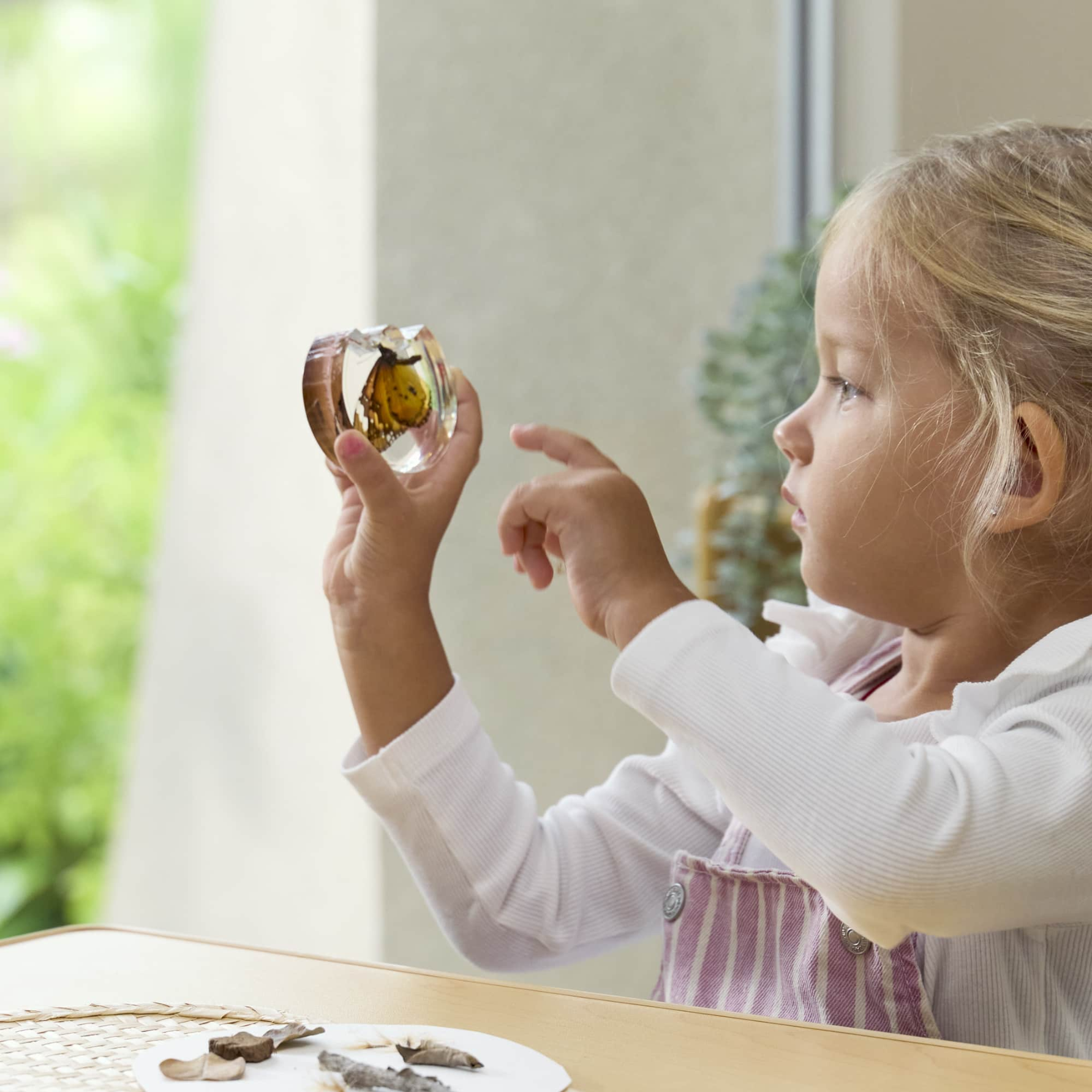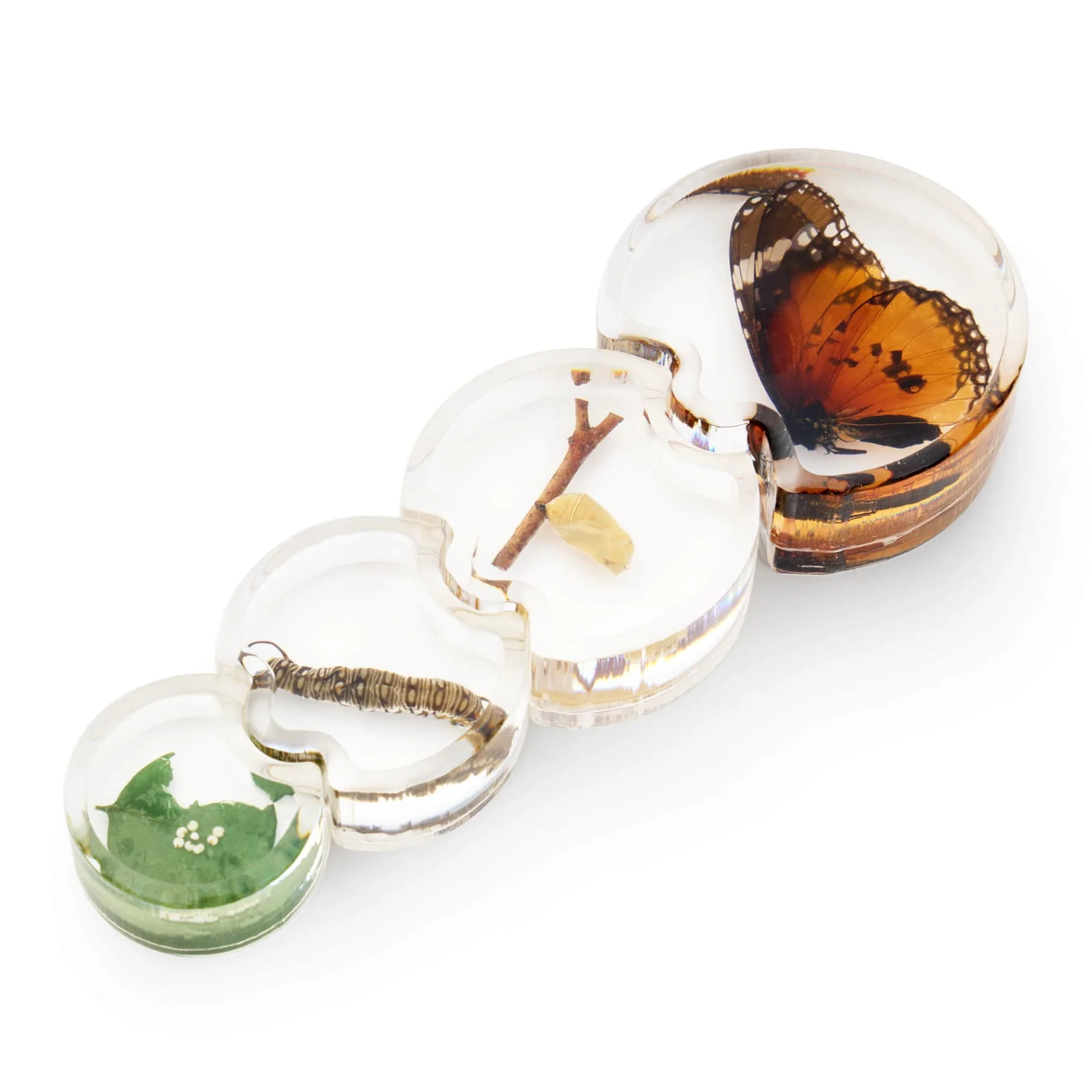 Laat kinderen de wondere wereld van de vlinder ontdekken! Volg met deze transparante puzzel het magische proces van het verpoppen van rupsen tot het uitkomen van vlinders.