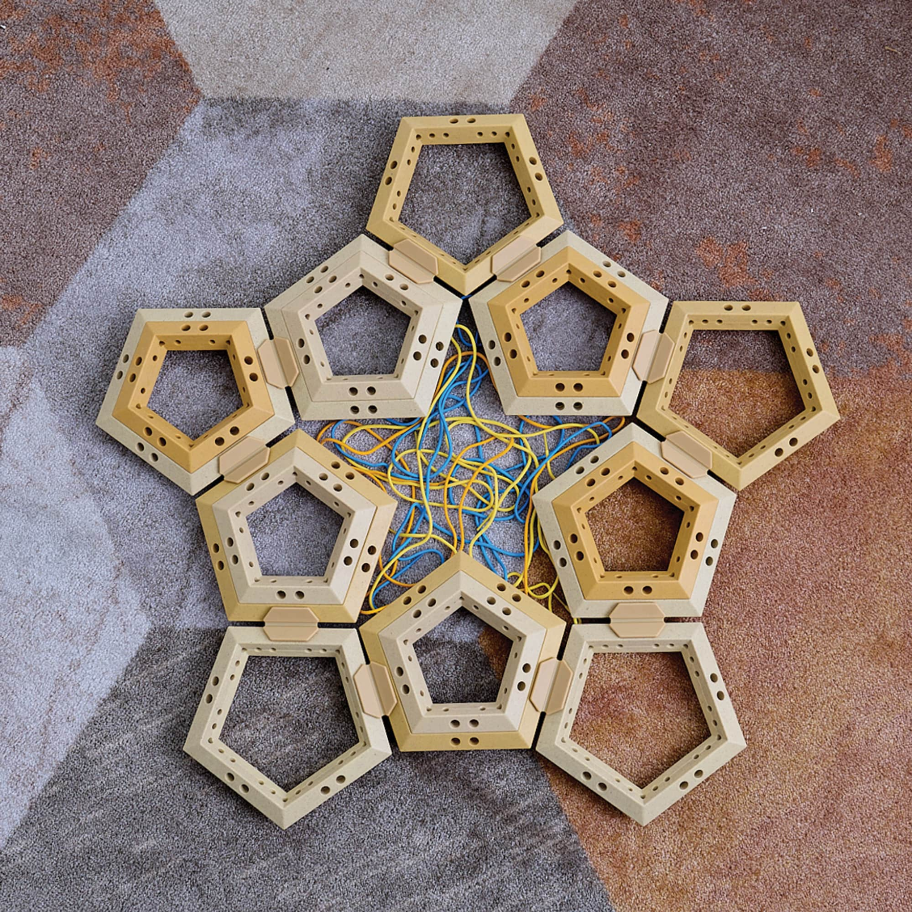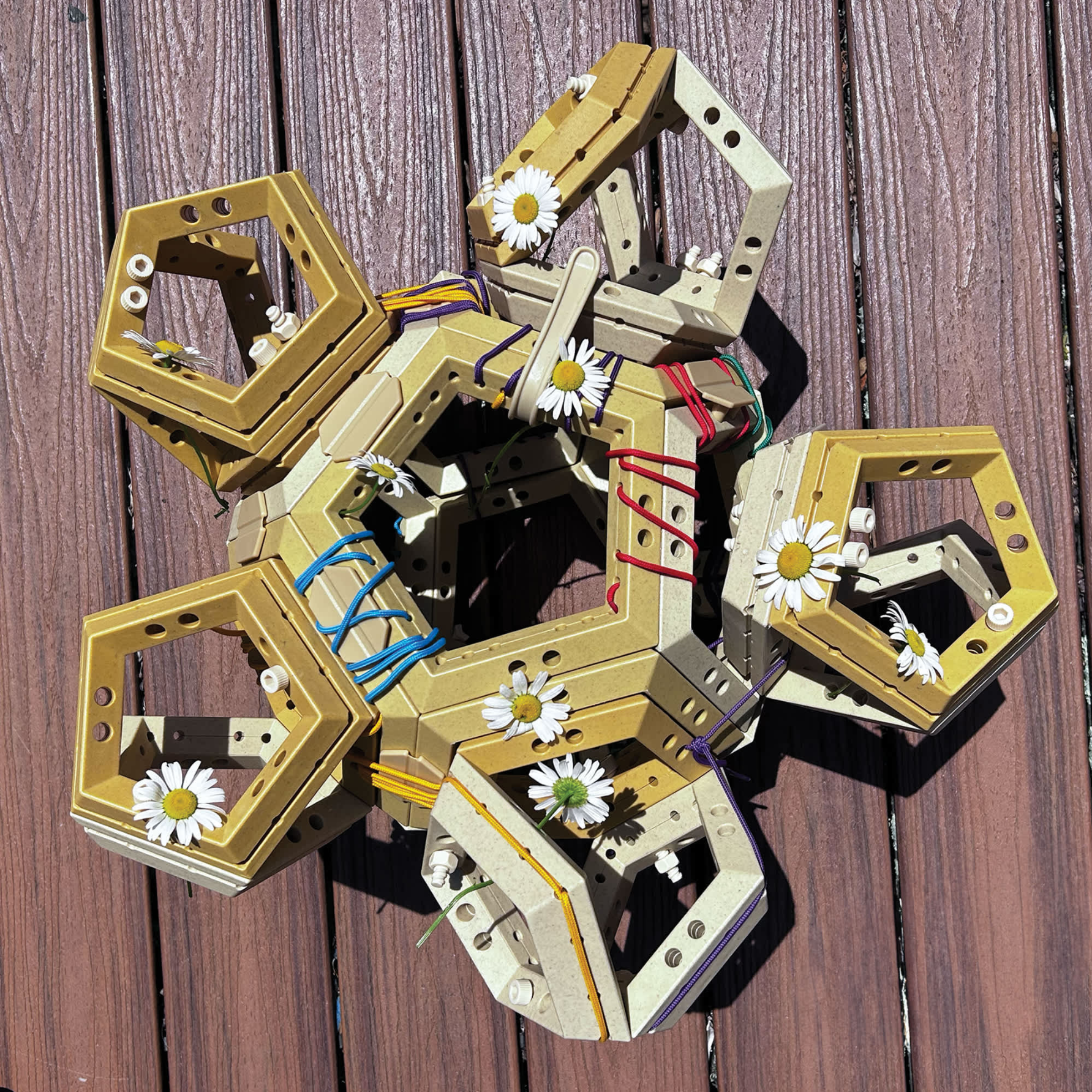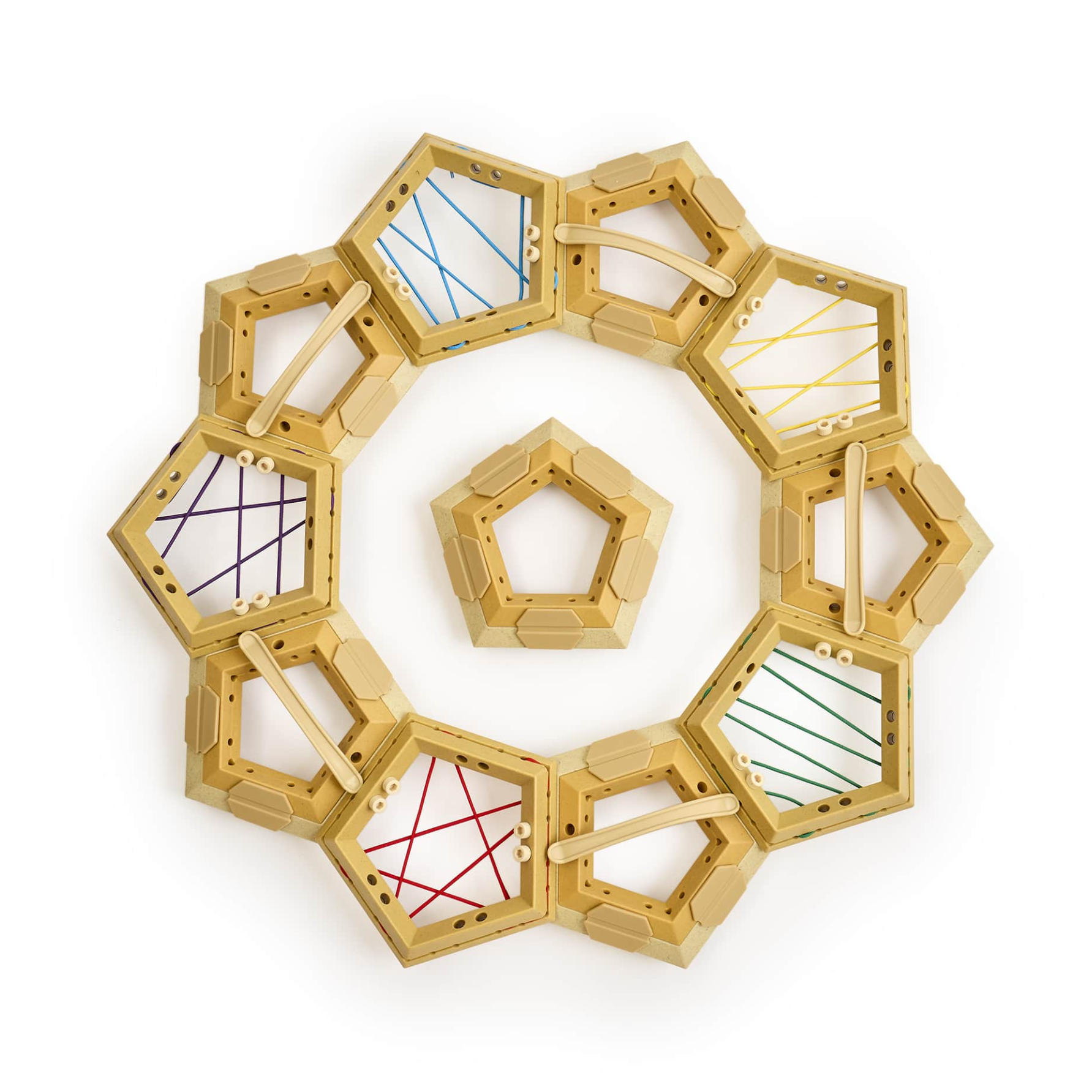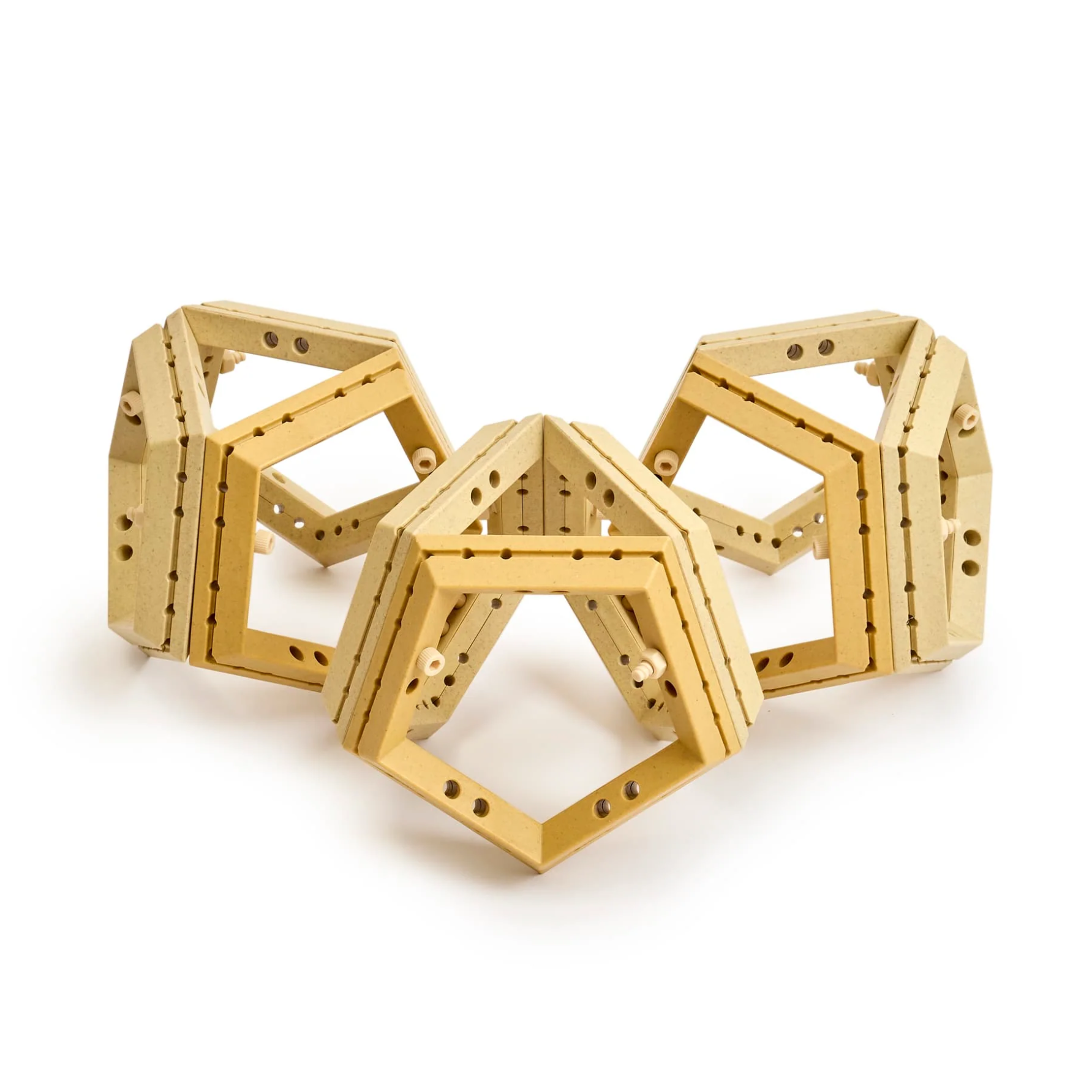 Hele grote set met zachte, buigzame plastic onderdelen met een kliksysteem en kogel- en scharnierverbindingen waarmee kinderen gemakkelijk horizontaal, verticaal of in een webachtig netwerk kunnen bouwen.