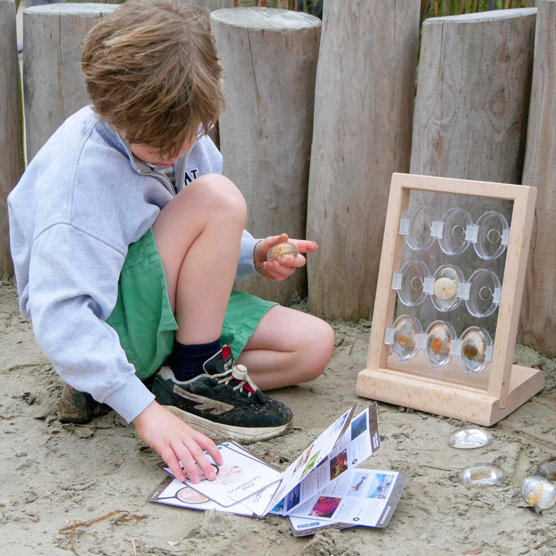 Nieuwsgierig alle details in je opnemen en je verwonderen over de schoonheid van de natuur. Dat kan met de serie Specimen Stenen. Elke set bevat 9 stenen van acryl die 6 cm groot zijn en onderdelen uit de natuur bevatten. Elke set bevat ook 9 (engelstalige) kaarten met afbeeldingen.