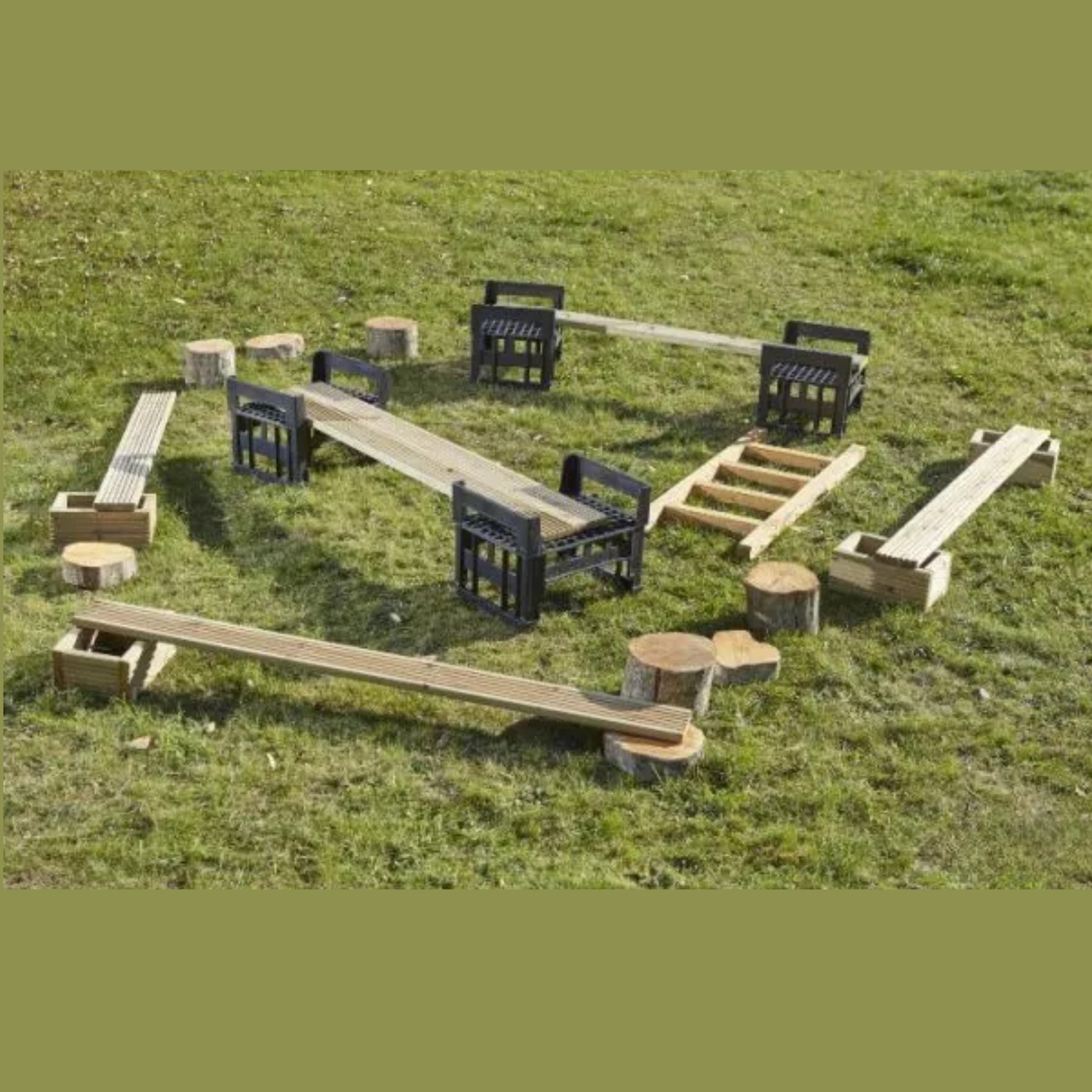 Inclusief ladders, loopplanken, H-kratten, holle blokken, boomstammen