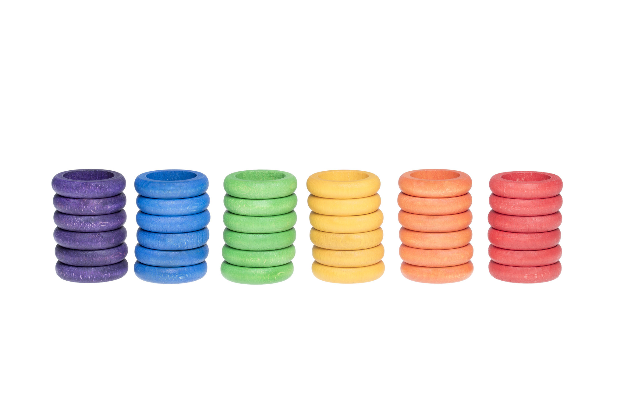 Deze set is gemaakt van duurzaam beuken- en berkenhout. De munten zijn met natuurlijke verfstoffen gekleurd en afgewerkt met plantaardige oliën.