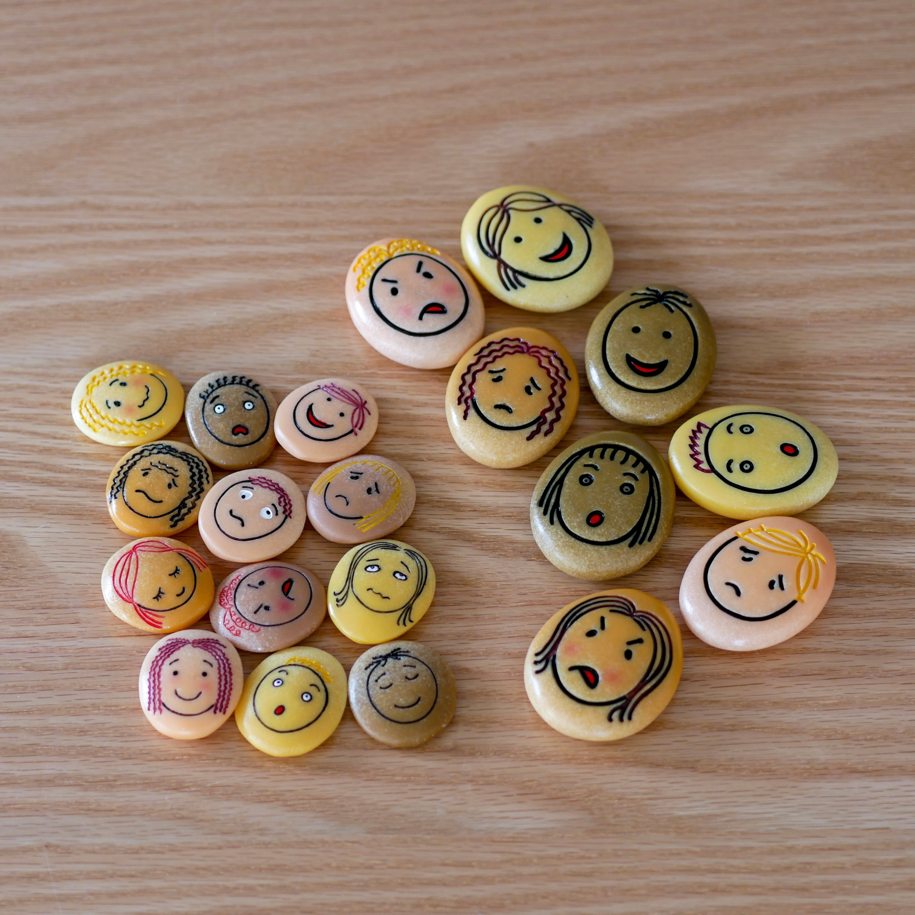 Speelstenen met emoties helpen kinderen om hun gevoelens beter te begrijpen. Ze leren verschillende emoties herkennen en benoemen, wat bijdraagt aan hun sociaal-emotionele ontwikkeling en taalontwikkeling.