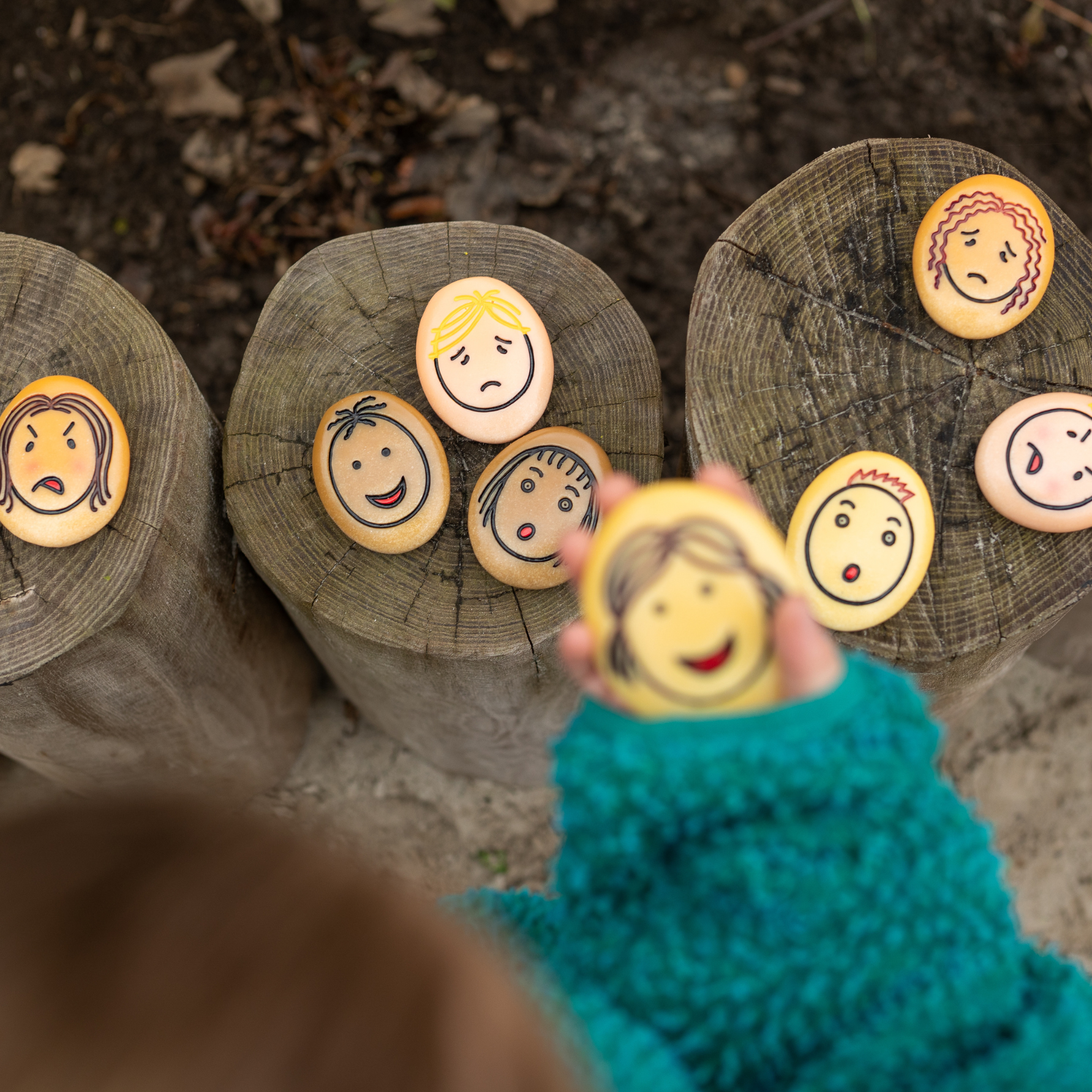 Deze speelstenen zijn geschikt voor zowel binnen- als buitenspel. Zowel in een rustige hoek als buiten in een speelsituatie kunnen emoties besproken en verwerkt worden, waardoor leren en spelen samenkomen.