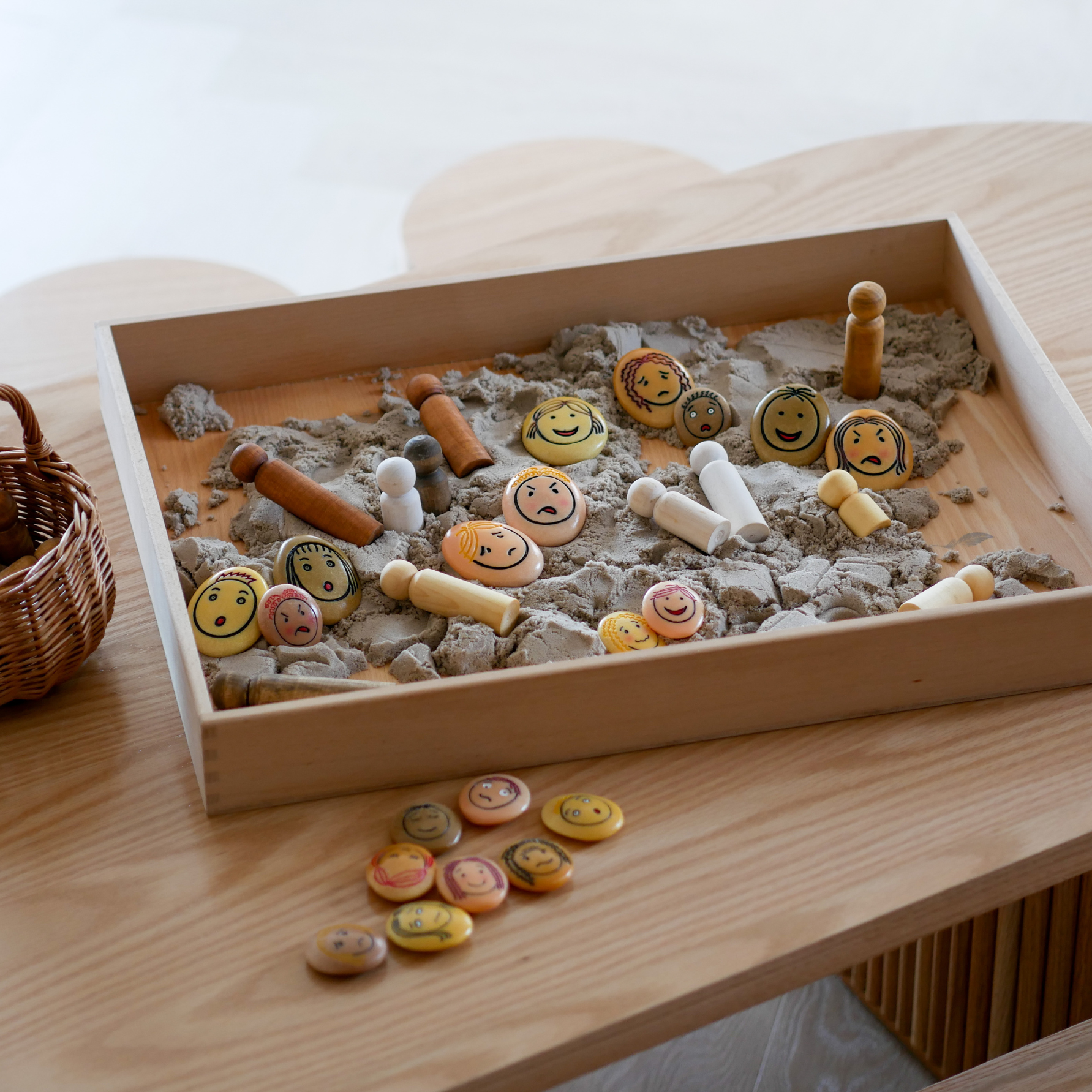 De 8-delige set bestaat uit verschillende emoties. Hiermee worden kinderen uitgenodigd om gevoelens te herkennen, benoemen en spelenderwijs te verkennen.