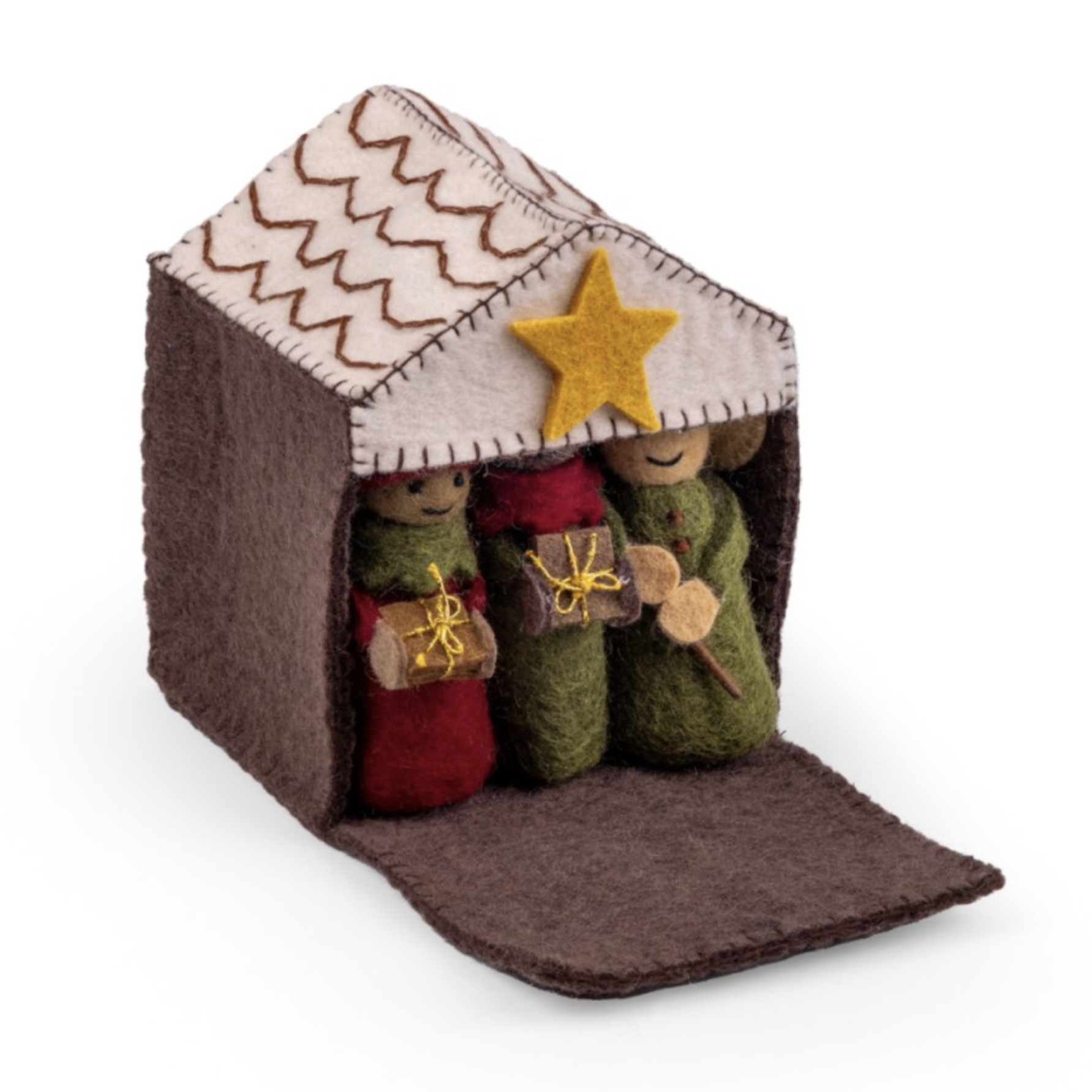 De vilten kerststal van Sjaal met Verhaal is een super leuke toevoeging op de kerst seizoenstafel. De vilten figuurtjes passen allemaal in de kerststal. Alle producten van Sjaal met Verhaal worden met de hand gemaakt in Nepal.