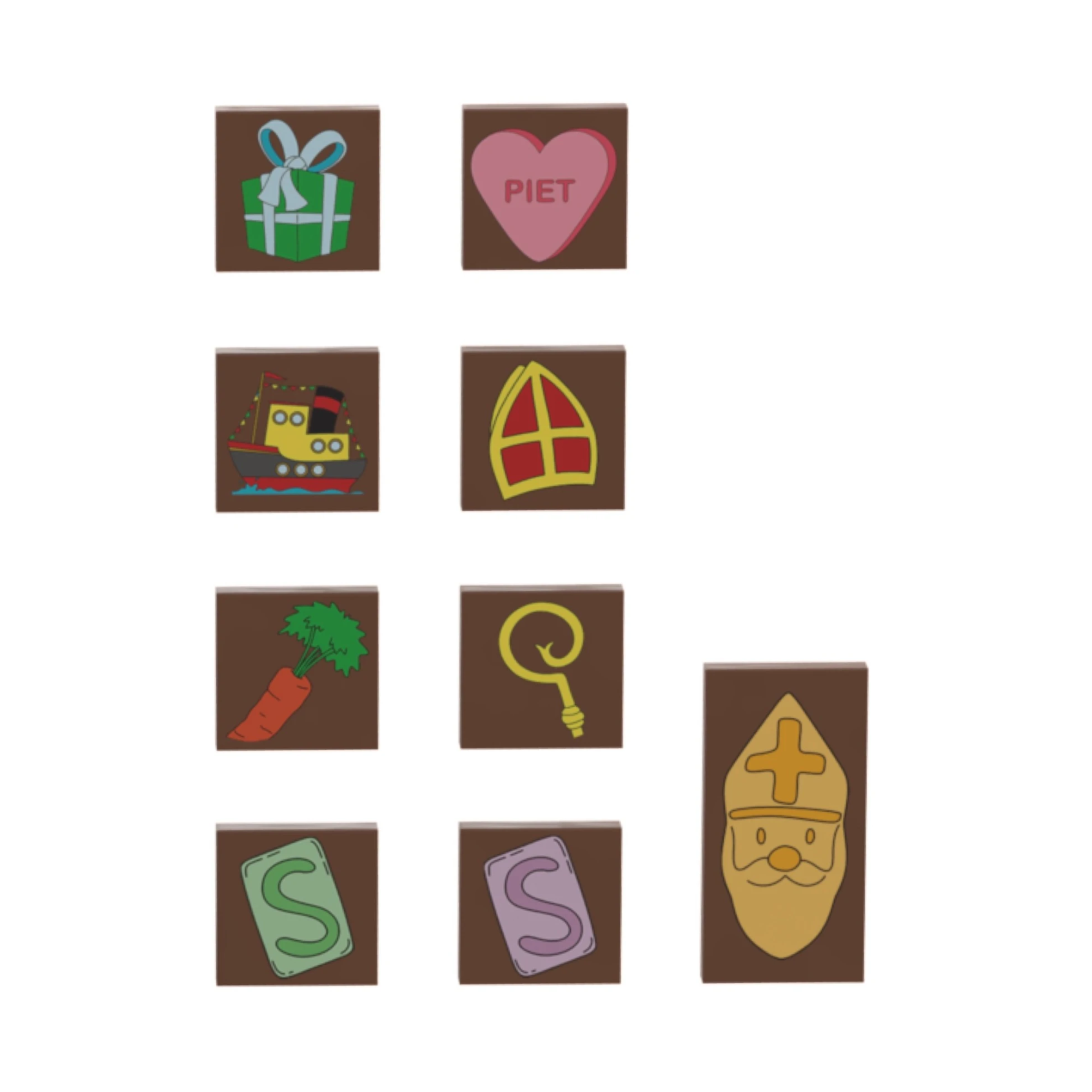 Met deze bouwset maak je zelf een chocoladeletter. In de doos zit een papieren bouwinstructie om de letter S te maken en met de 26 QR codes open je bouwinstructie van alle andere letters van het alfabet op een smartphone of tablet. Wanneer je de chocoladeletter gebouwd hebt kun je hem vervolgens decoreren met leuke sinterklaas plaatjes.