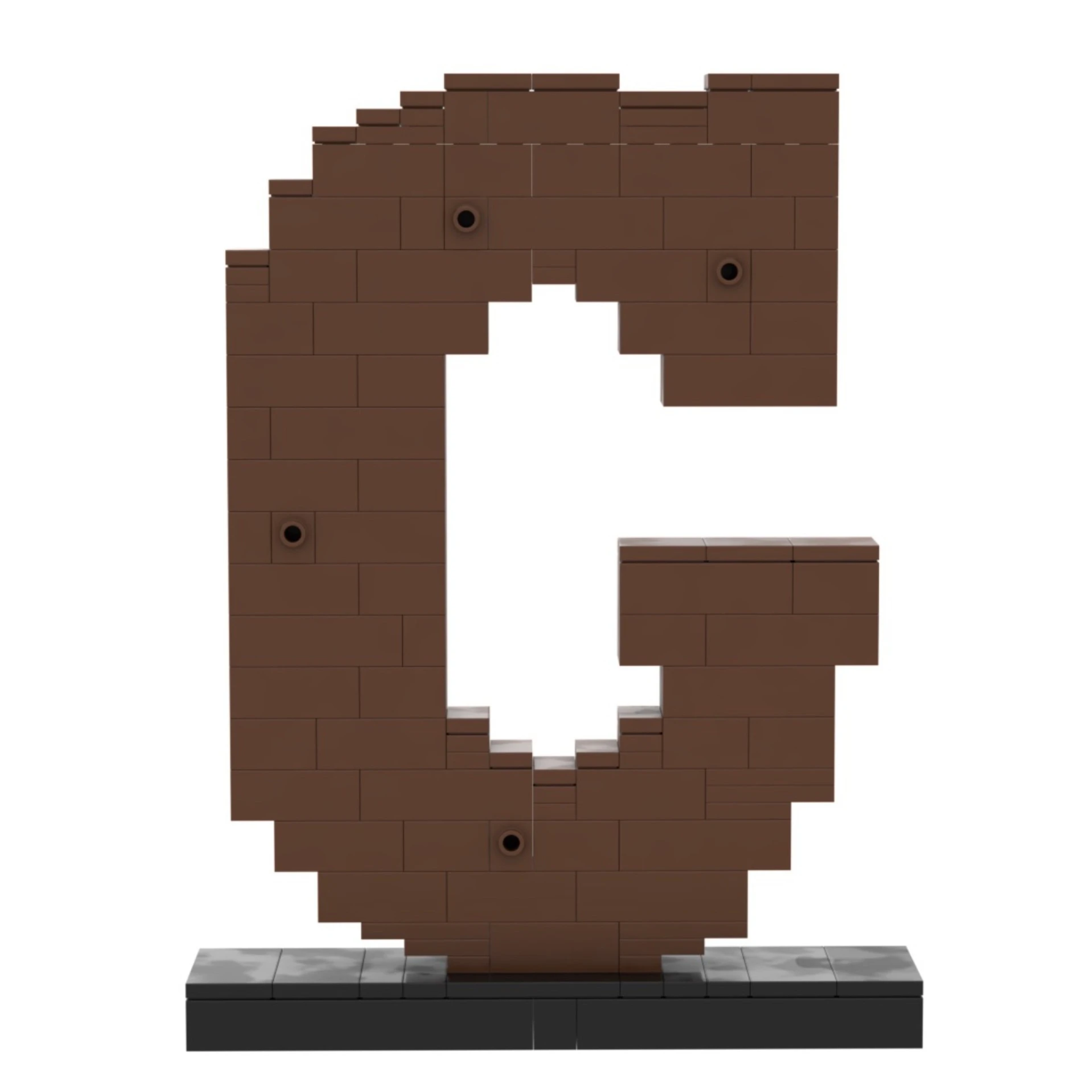 De set bestaat uit 174 steentjes en als de letter klaar is, is hij 14,9 cm hoog.