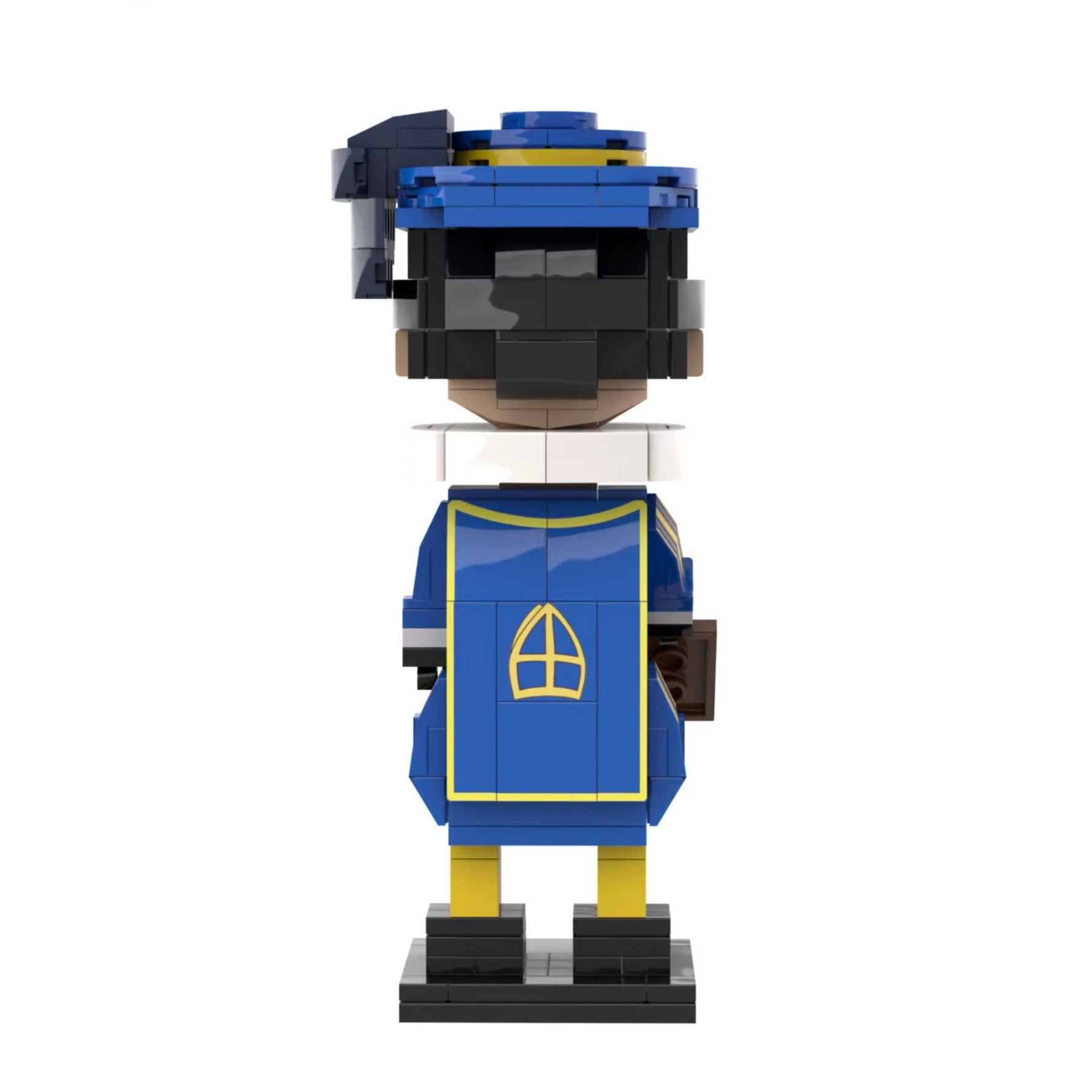 Met deze bouwset maak je zelf een piet. Met de QR code in de doos open je de bouwinstructie op een smartphone of tablet. De bouwsteentjes zijn goed te combineren met Lego en kunnen dus ook na de sinterklaas periode nog gebruikt worden.