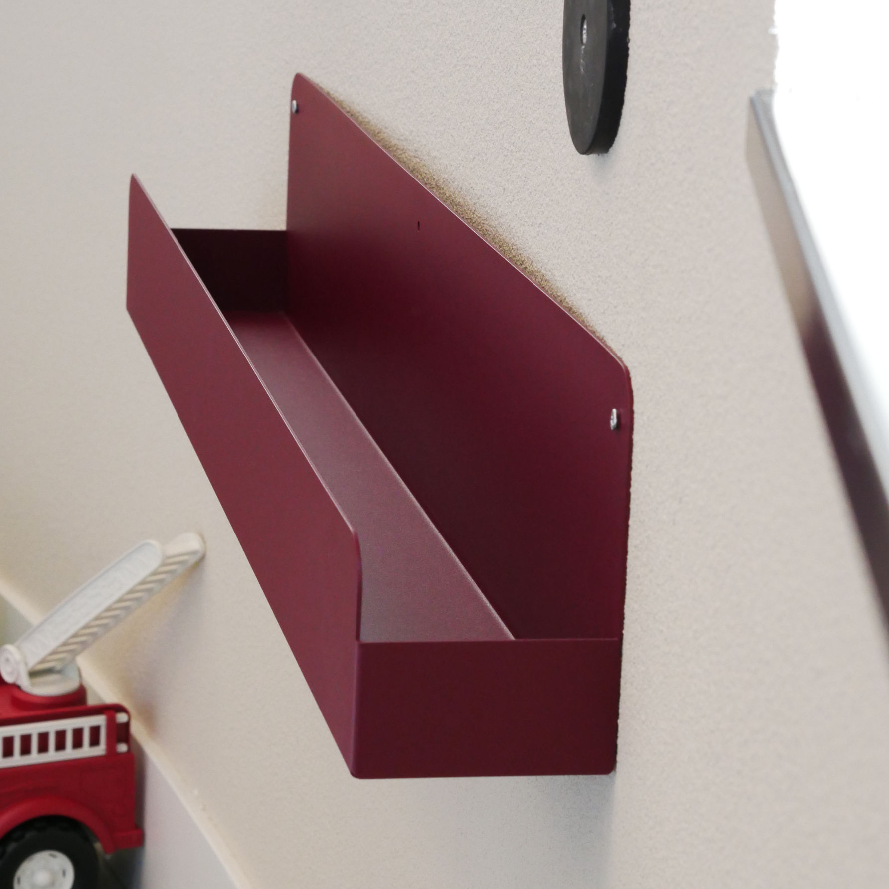 Opbergschap van 80 cm breed om onder het magneetbord aan de muur te bevestigen voor het opbergen van magnetische speelelementen, zoals de magnetische tegels of magnetische cijfers en letters.