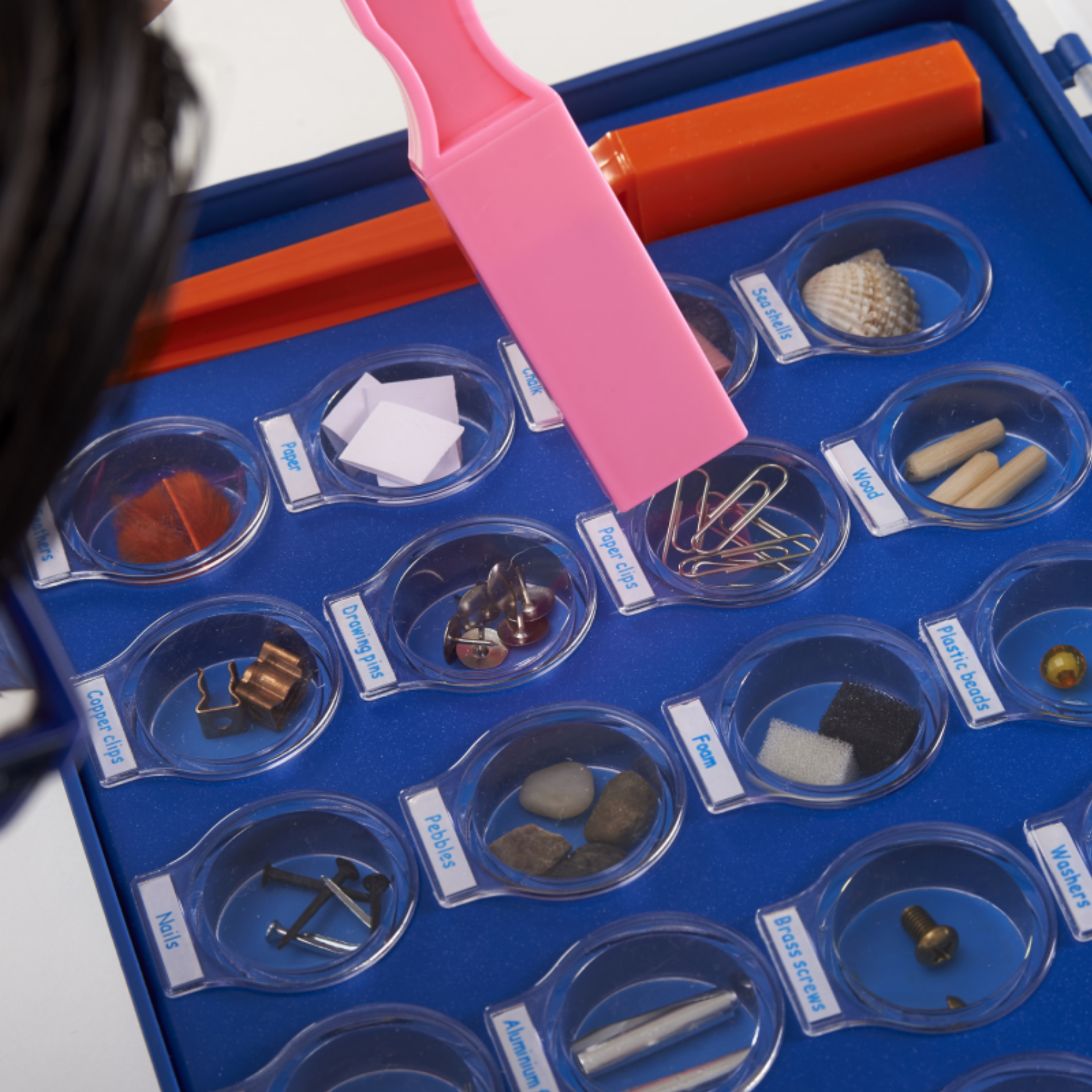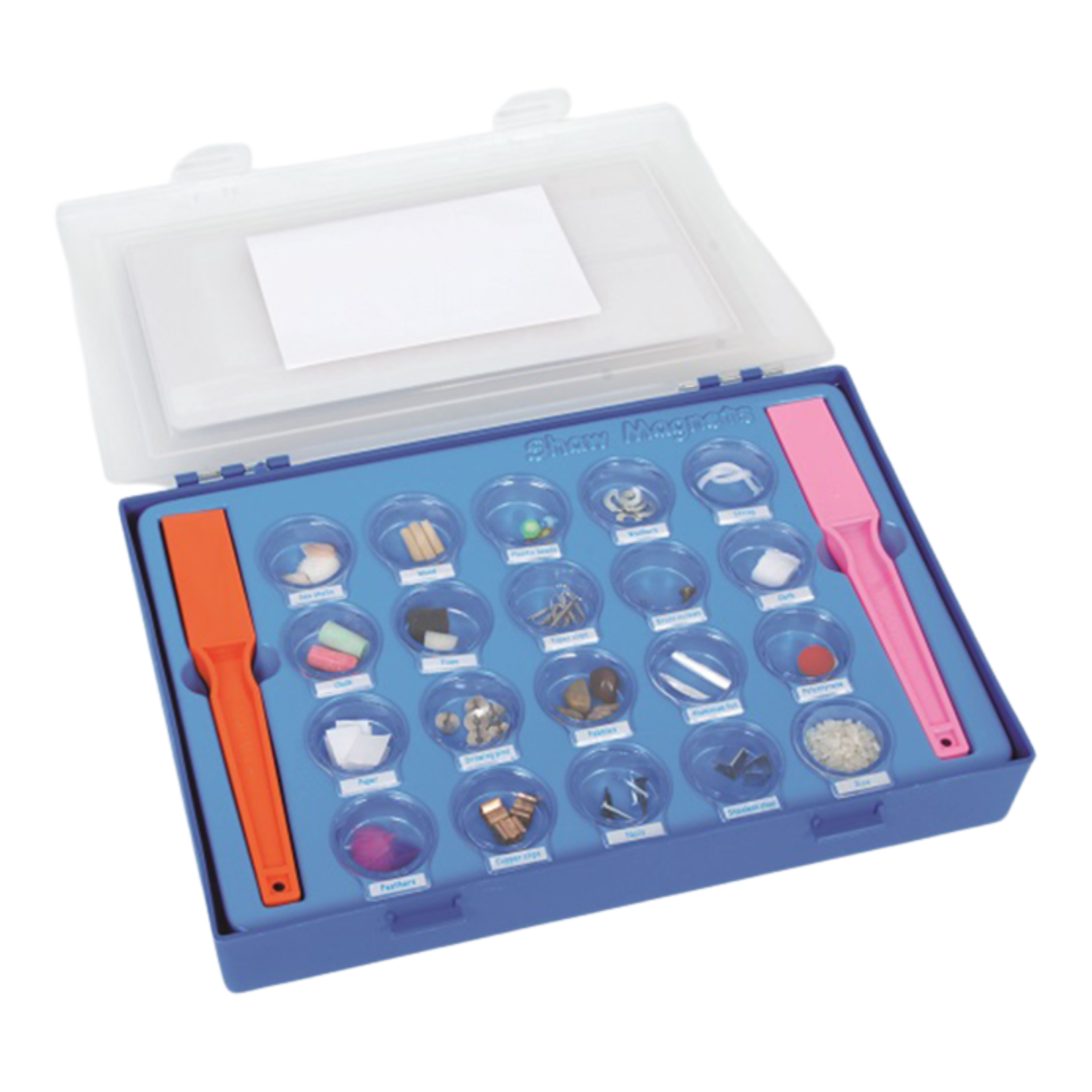 De Magnetische Materialen Test Set is een leuke en leerzame ontdekset waarmee kinderen in de kinderopvang zelf kunnen onderzoeken welke materialen magnetisch zijn en welke niet, met twintig verschillende bekende en verrassende voorwerpen in doorzichtige potjes en twee magnetische teststaven om mee te experimenteren. Dit materiaal stimuleert nieuwsgierigheid, observatie en het oefenen van onderzoeksvaardigheden tijdens spel en groepsactiviteiten, en is daardoor een waardevolle toevoeging op de groep.