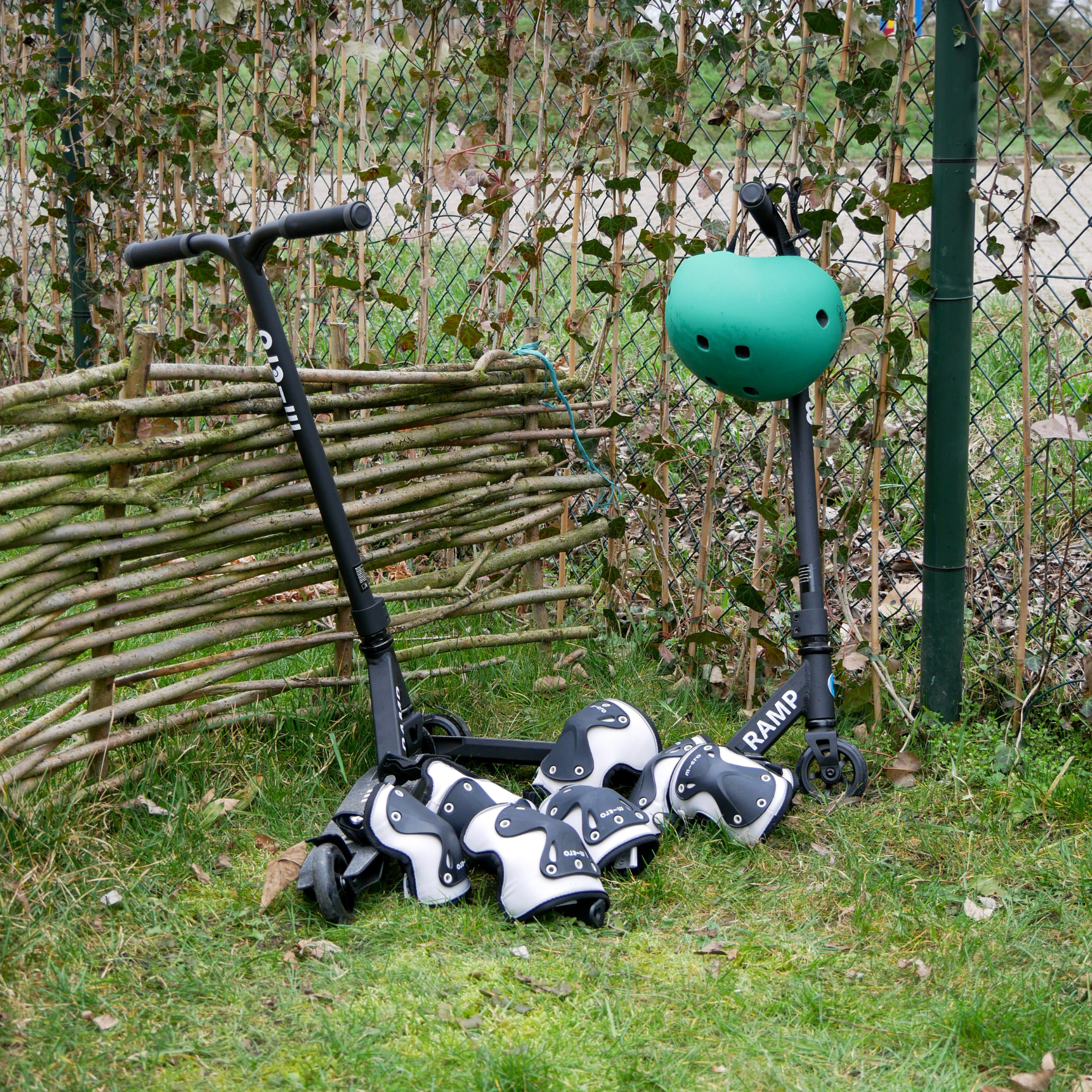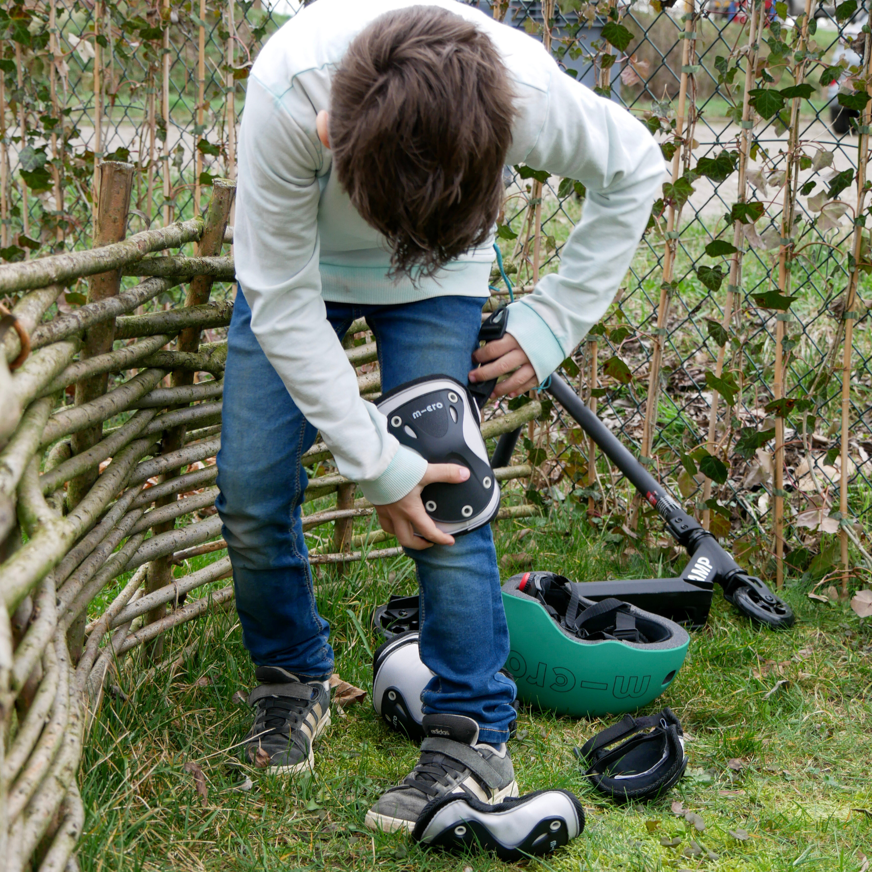 Deze stevige knie- en elleboogbeschermers van Micro Step bieden extra bescherming aan kinderen tijdens het steppen (of schaatsen).