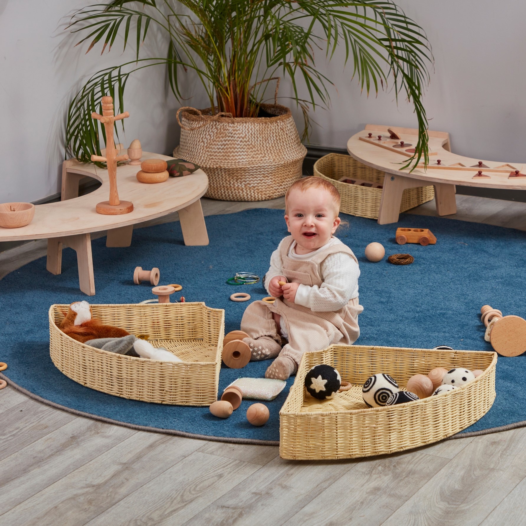 De Rookie vloermand is een ruime mand om losse items in op te bergen. Kinderen kunnen hier gemakkelijk zelf uit pakken waar ze mee willen spelen. De mand sluit perfect aan op de Rookie meubels.