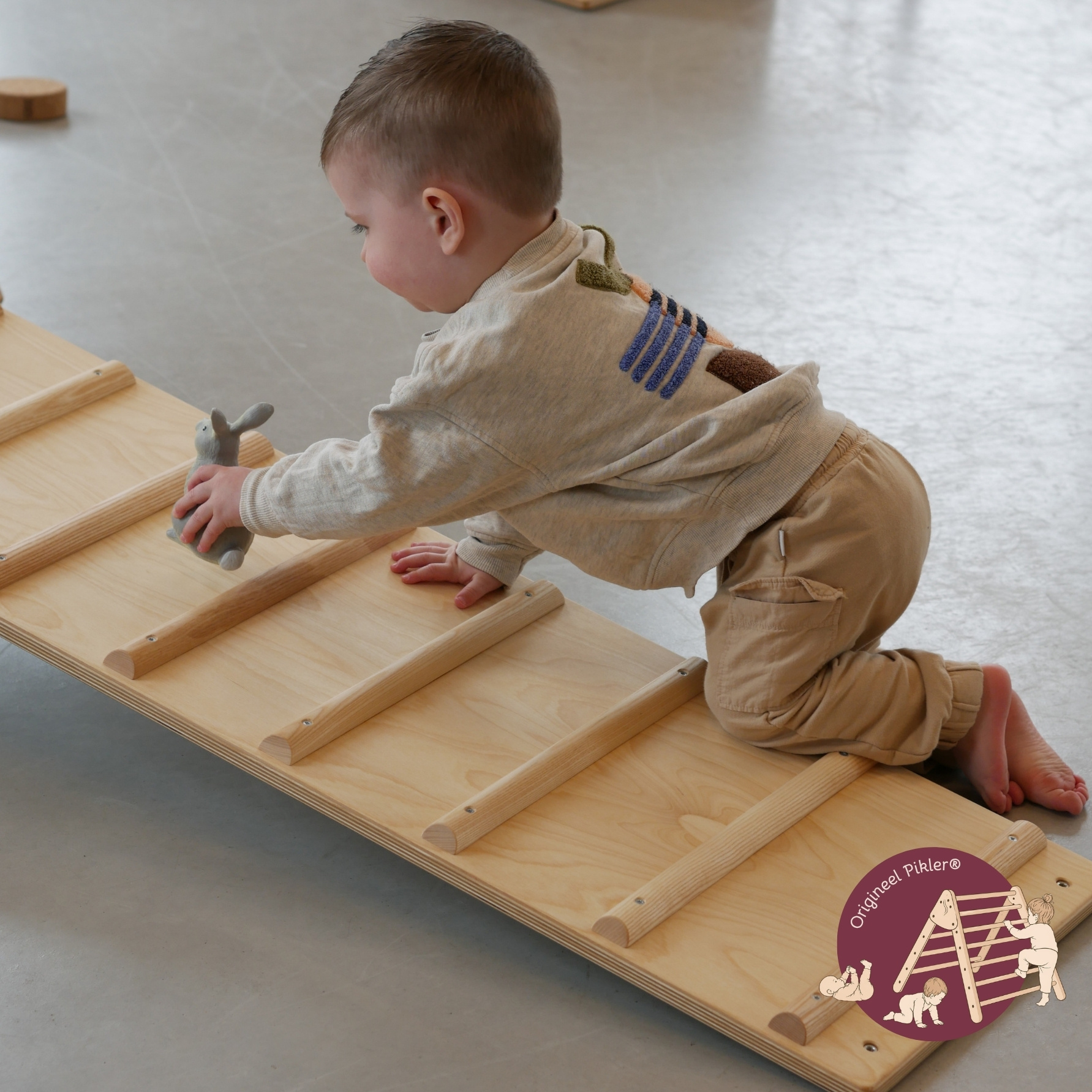 In combinatie met andere originele Pikler® materialen zoals de klimdriehoek, kruipkist en aanvullende items ontstaat een complete beweegomgeving die aansluit bij de ontwikkeling van het kind.