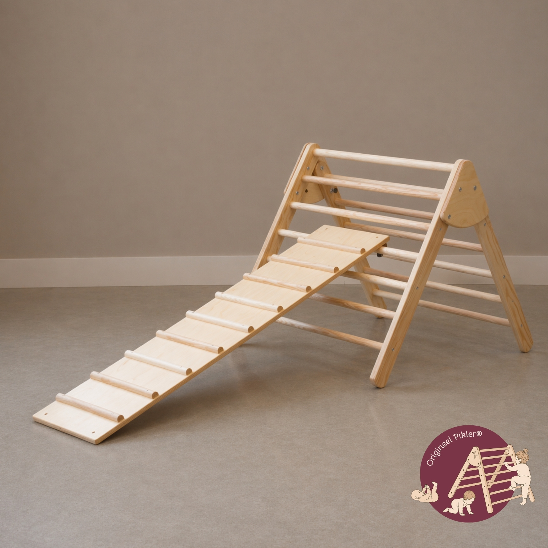 De originele Pikler® glijplank is geen standaard speelplank, maar een doordacht onderdeel van een groter ontwikkelingsconcept. Elk detail is afgestemd op hoe kinderen bewegen, ontdekken en leren.