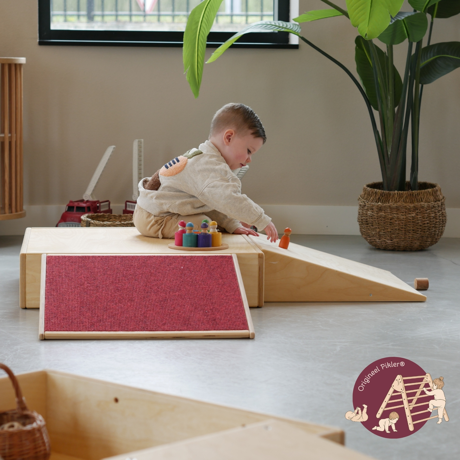In combinatie met ander Pikler® materiaal groeit de speelomgeving mee met het kind.
