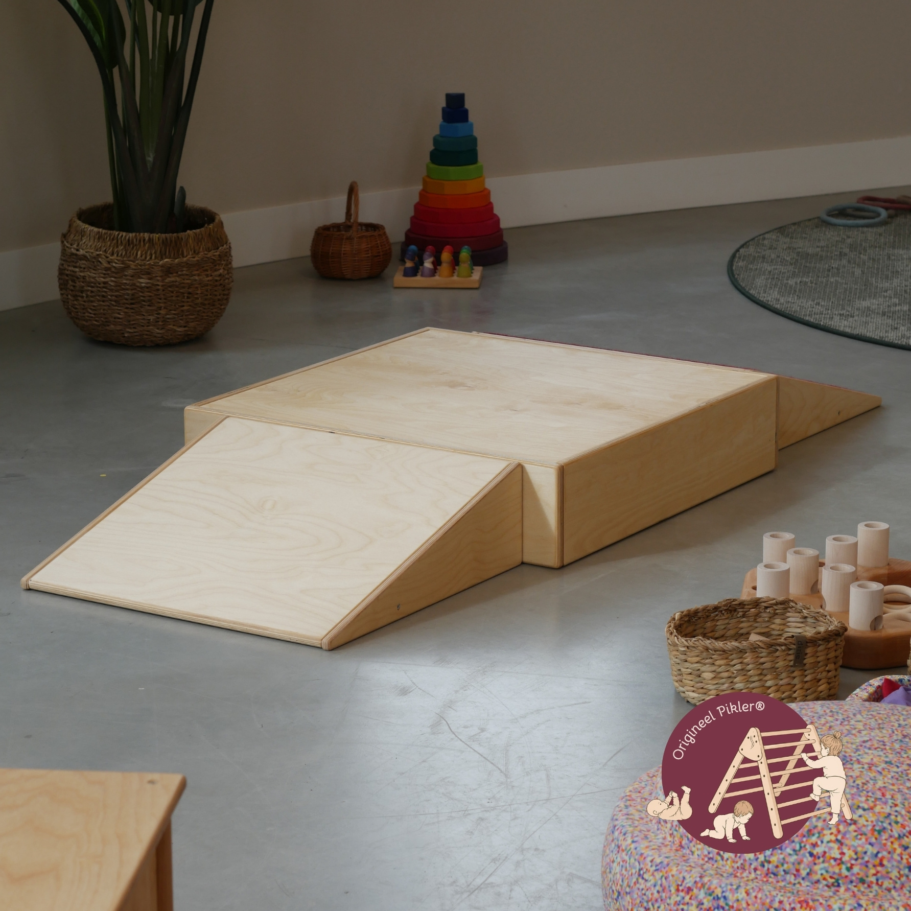 Ben je op zoek naar een uitbreiding op de Pikler® kruipkist waarmee kinderen nieuwe bewegingservaringen opdoen? Deze gladde helling is ontwikkeld vanuit de visie van Emmi Pikler en biedt een vloeiende overgang tussen verschillende hoogtes.