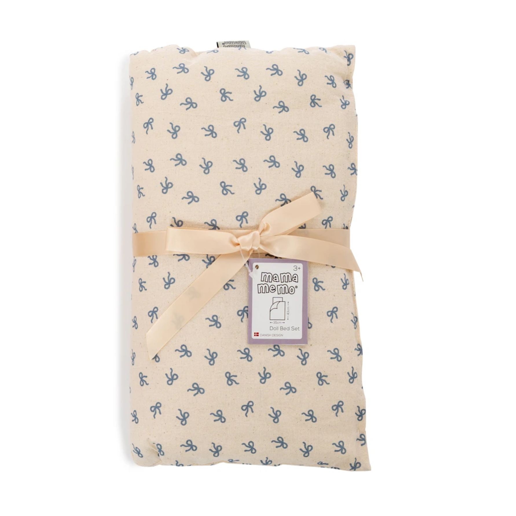 Mamamemo - Poppen Bed Set - Blauwe Strik (50 cm)
