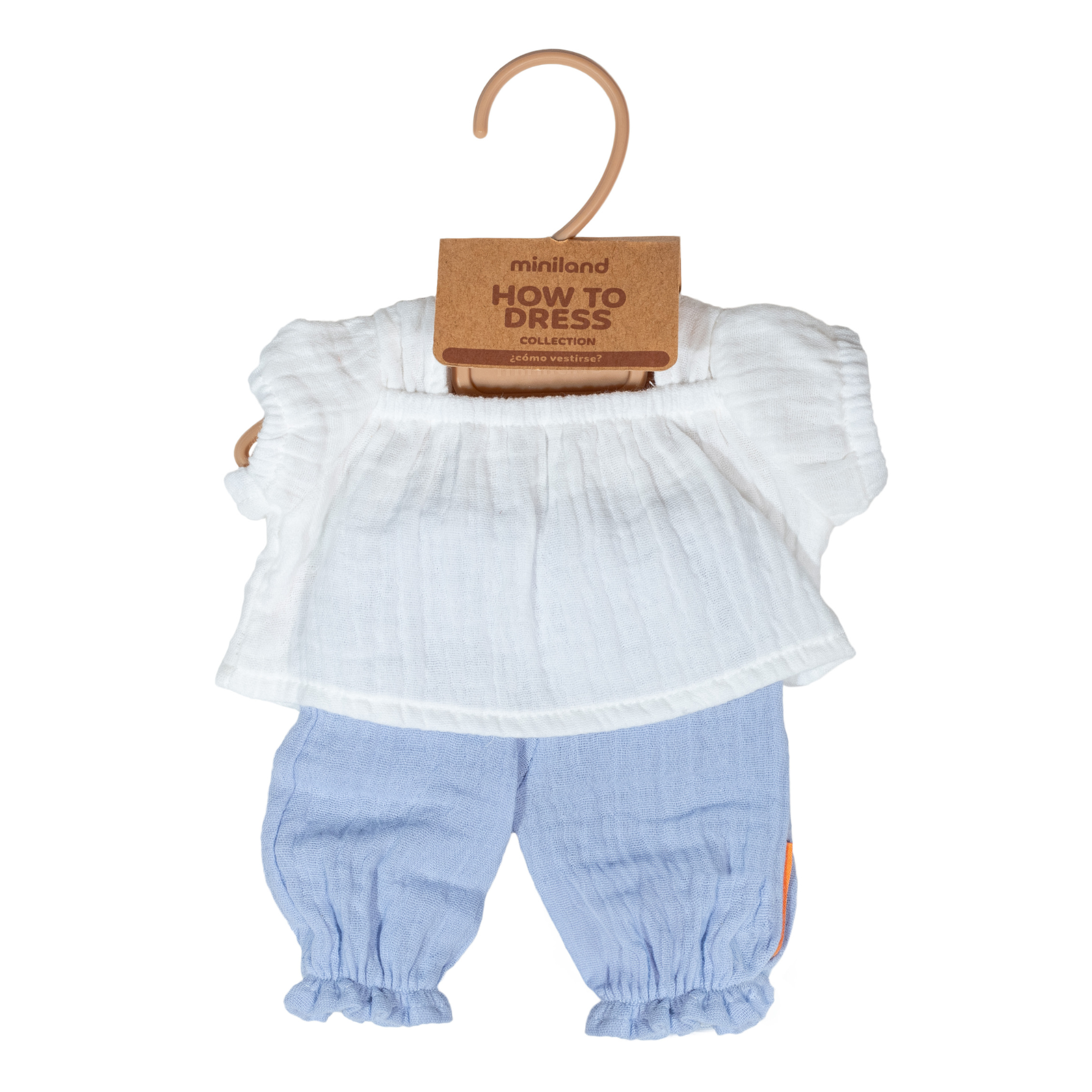 Miniland - Poppen Kledingset - Blauwe Broek & Witte Blouse (pop 38 cm)