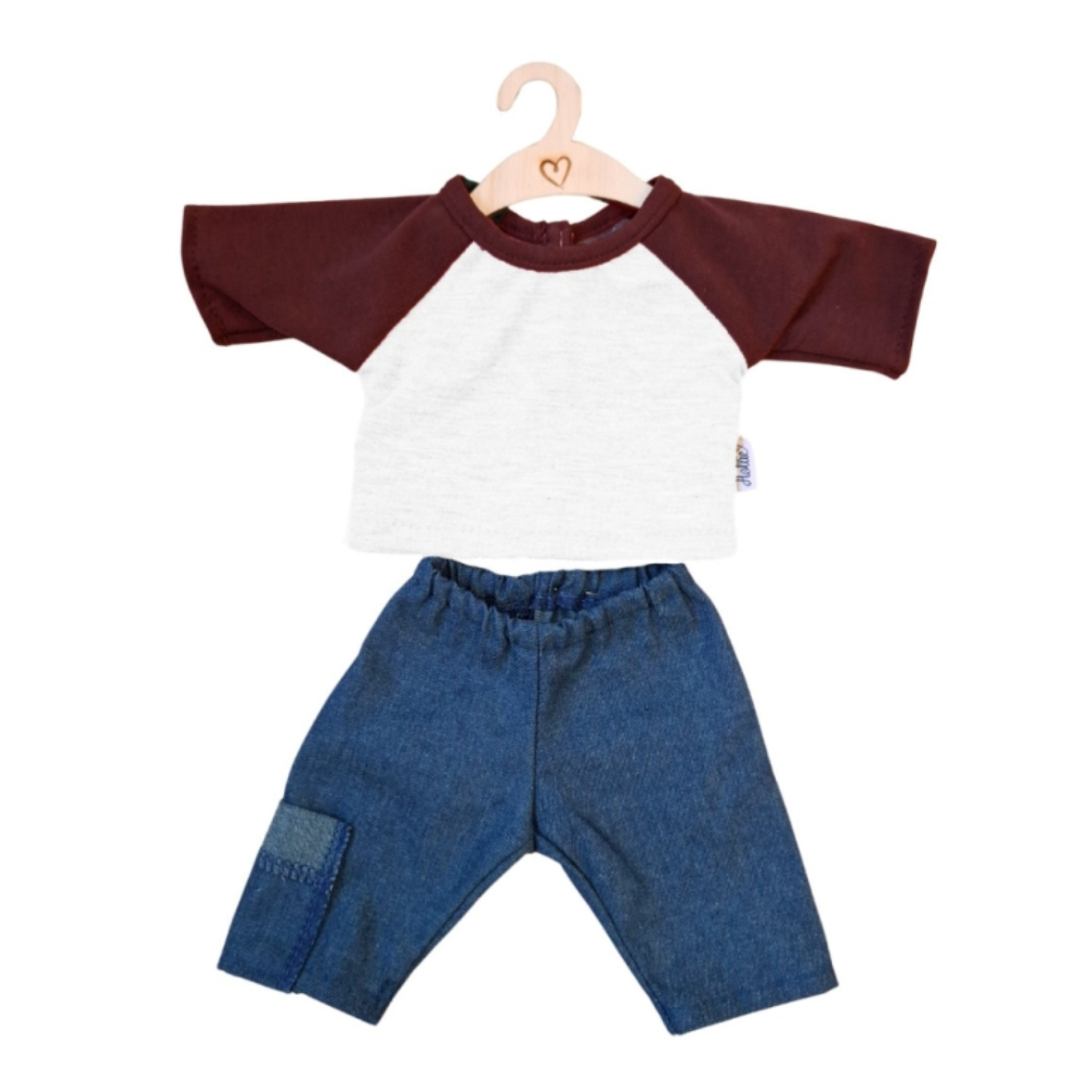 Hollie - Poppen Kledingset - Broek & Shirt - Wit Bordeaux