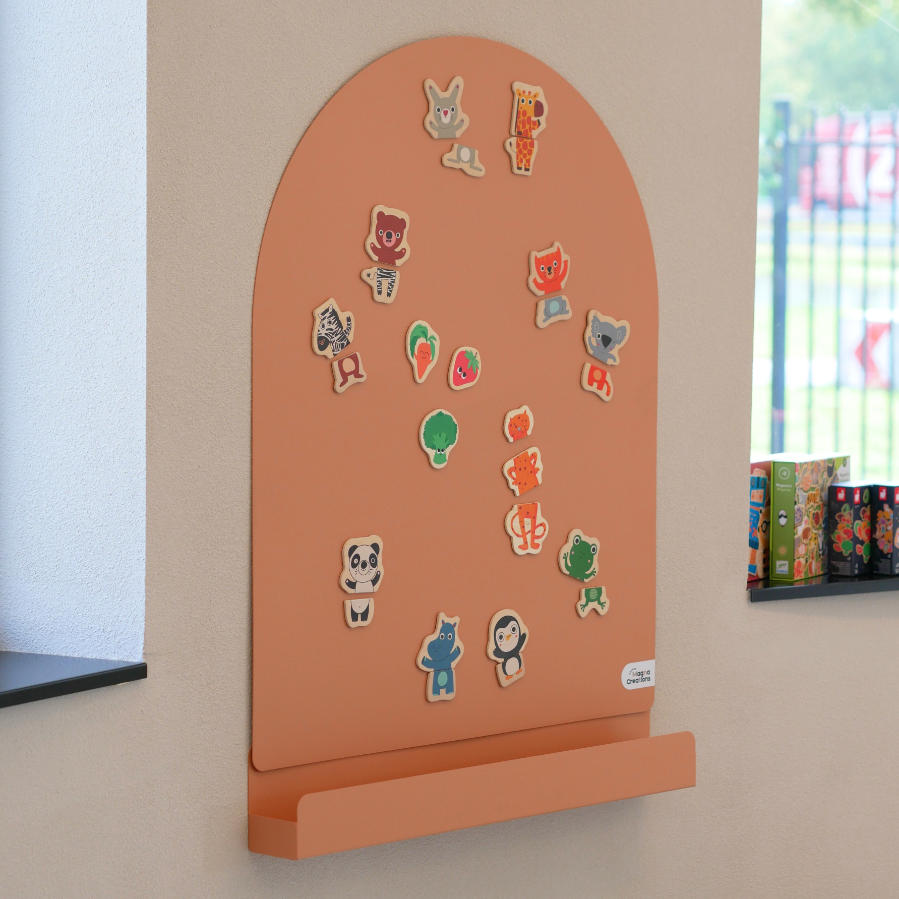De magnetische muurplaat 'Bow' van Magna Creations is ontworpen met de gedachte dat elk kind een ‘tiny artist’ is. Deze vernieuwende magneetboog voor aan de wand biedt kinderen een uitbreiding in artistieke en magnetische spelmogelijkheden. Vanuit hun eigen fantasie en creativiteit kunnen de kleine artiesten kleurrijke structuren, repeterende patronen, fantasierijke bouwwerken en unieke kunstwerken maken. De magnetische boog heeft een solide afwerking van poedercoating die zorgt voor verbeterde bestendigheid tegen krassen en slijtage bij intensief dagelijks regelmatig gebruik. Met keuze uit vijf trendy kleuren past de magneetboog in elk interieur.