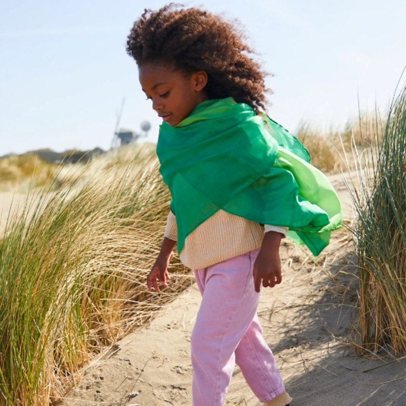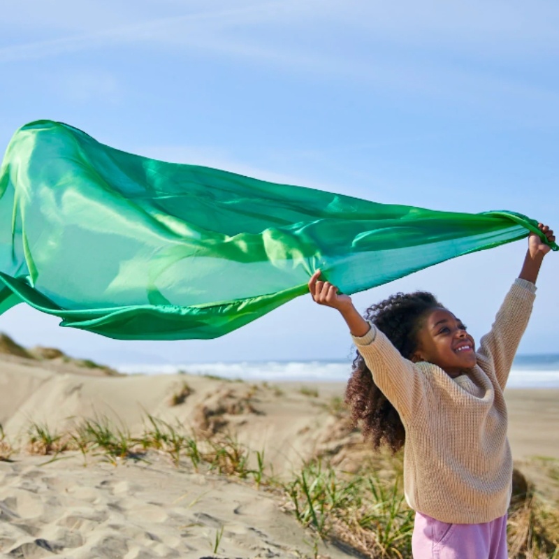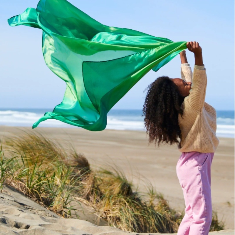 Sarah’s Silks zijn gemaakt van 100% zijde. Deze speeldoek biedt kinderen tal van mogelijkheden om creatief en fantasievol aan de slag te gaan. Als cape, vlag, poppendeken, elfenvleugels, prinsessenjurk of als doek om je eigen hut te bouwen ondergrond voor de mooiste bouwwerken of als achtergrond in de eigen fantasiewereld.