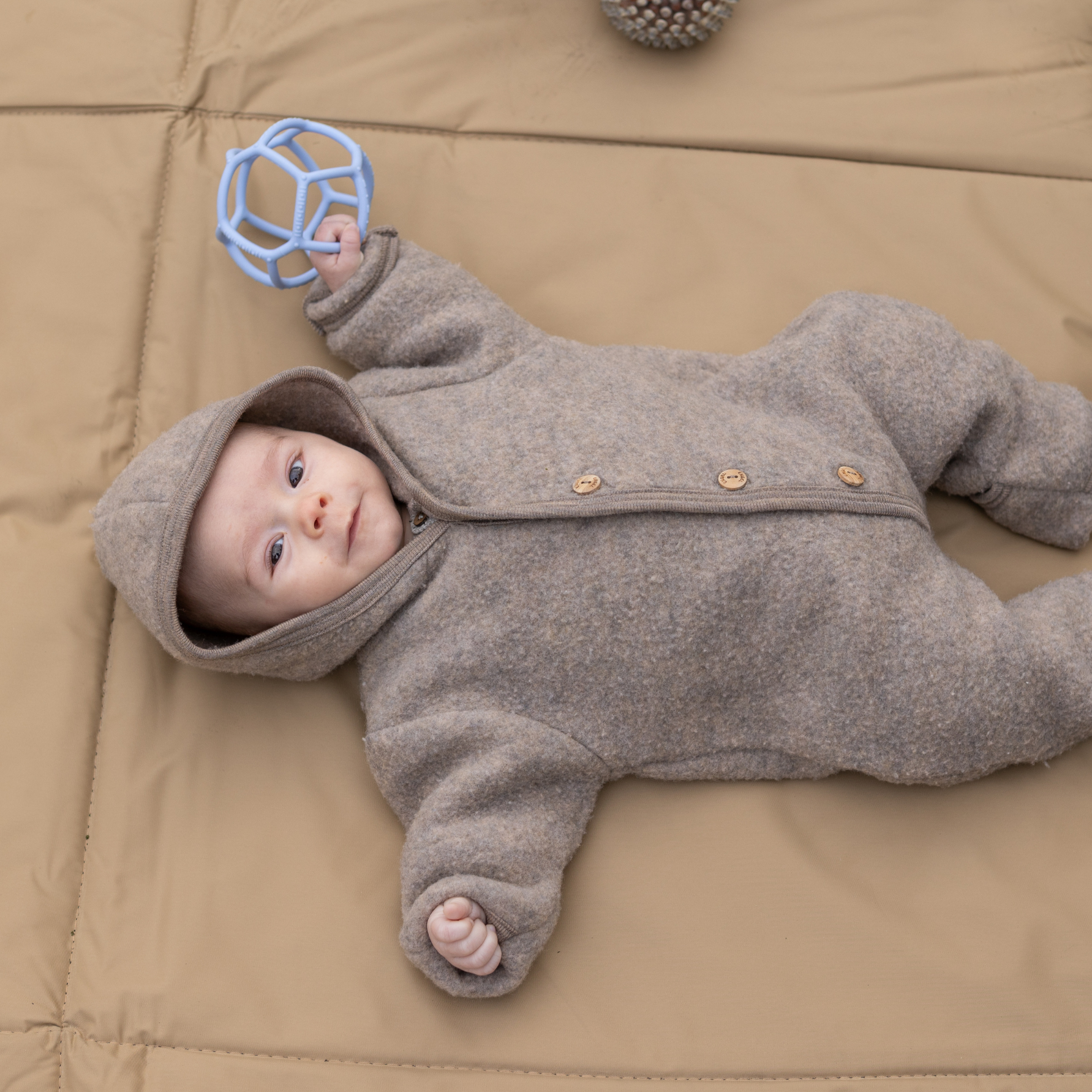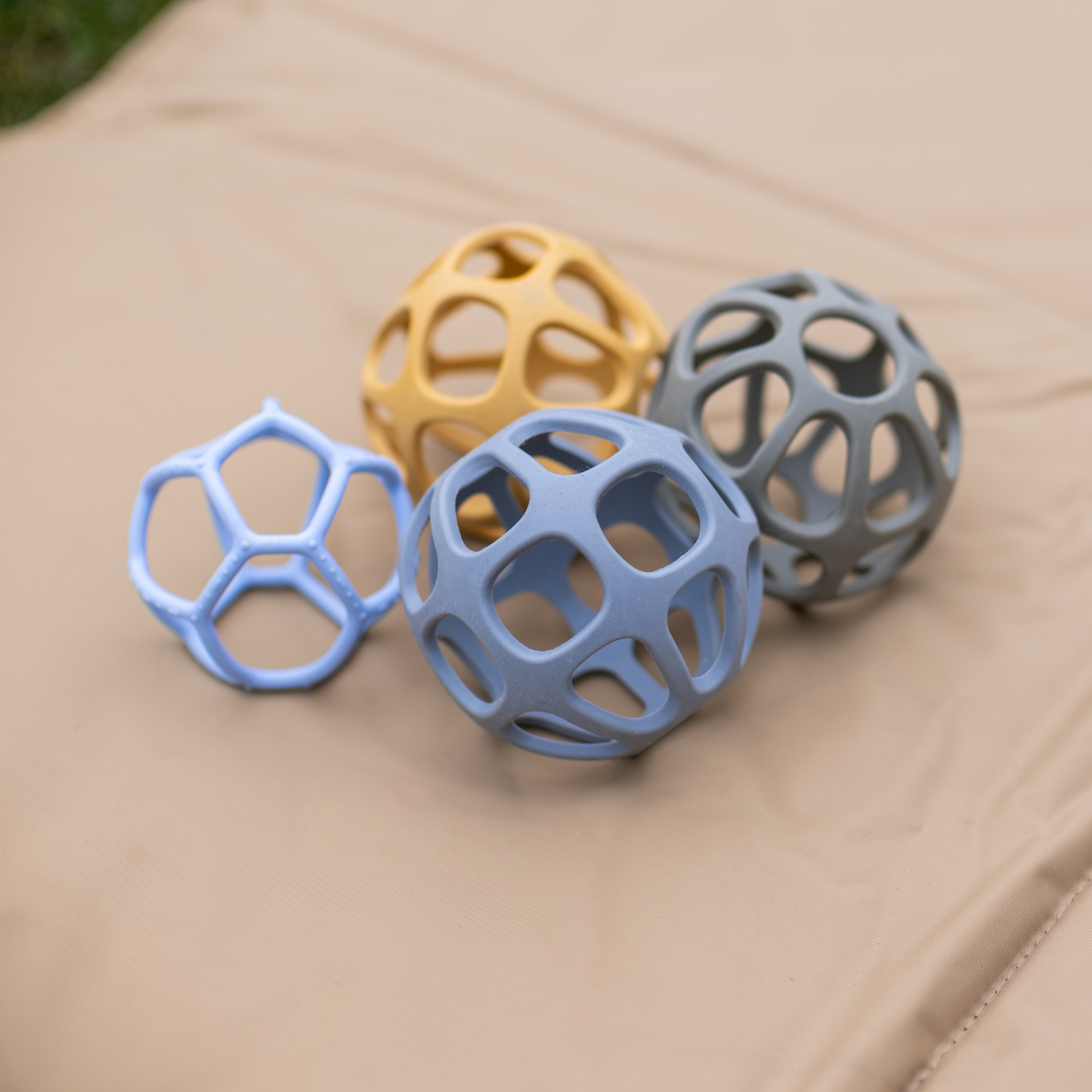 De bal is gemaakt van voedingssiliconen zodat kinderen veilig op het zachte oppervlak kunnen kauwen.