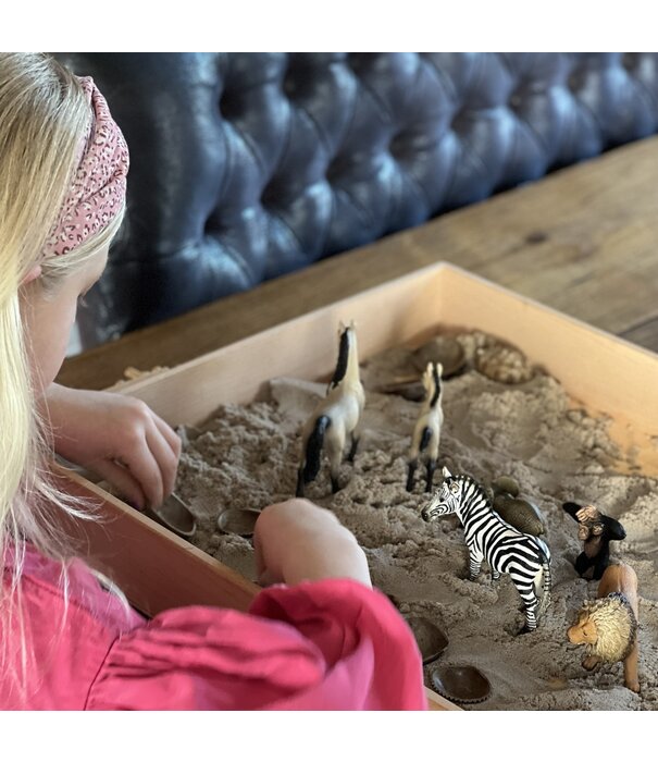 Wil je liever een speelbak die al helemaal gevuld is? Kinderen kunnen met deze basis set gelijk van start. Bekijk hier het ready to play pakket. De speelbak is gevuld met diverse sensorische producten zoals zand, kommetjes, potjes, poppetjes en lepels. Zowel voor de kinderopvang als BSO zijn er speciale complete sets.