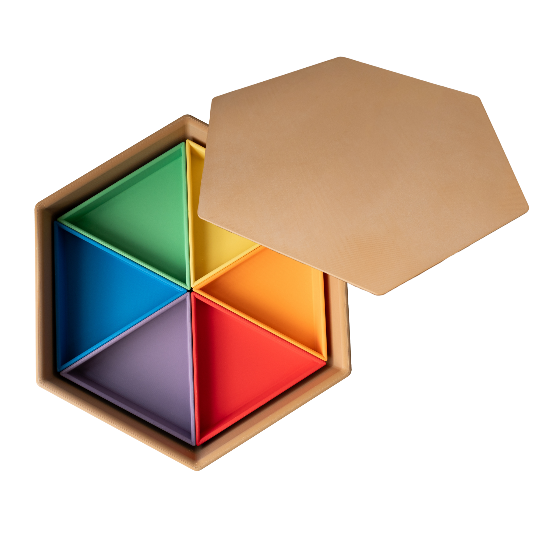 Deze zeshoekige speelbak met Inlegdriehoeken en deksel is perfect voor het aanbieden van sensorische materialen zoals rijst, zand, water of natuurlijke vondsten. Kinderen prikkelen spelenderwijs hun zintuigen en ontwikkelen hun motorische vaardigheden. Ook voor sorteerspellen is de Mandigo speelbak ideaal: kinderen kunnen materialen groeperen op kleur, vorm of structuur. Dankzij het rustige en duurzame ontwerp past deze speelbak in elke pedagogische omgeving en ondersteunt hij open-einde spel waarbij de fantasie van het kind centraal staat.