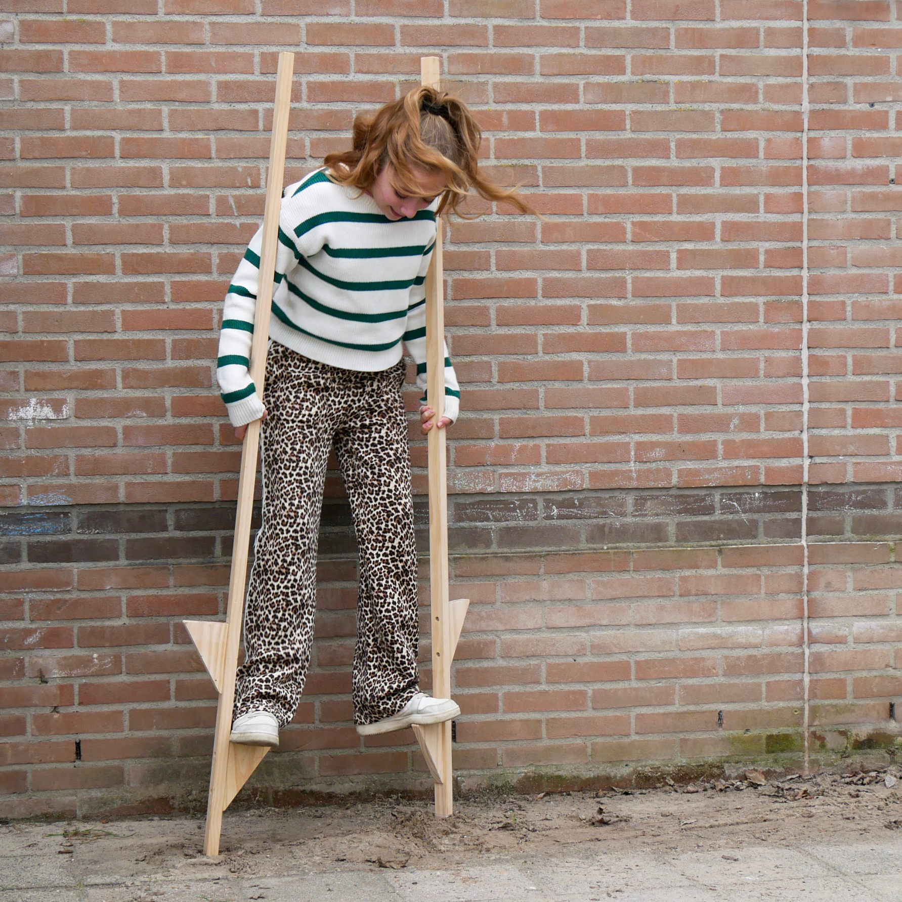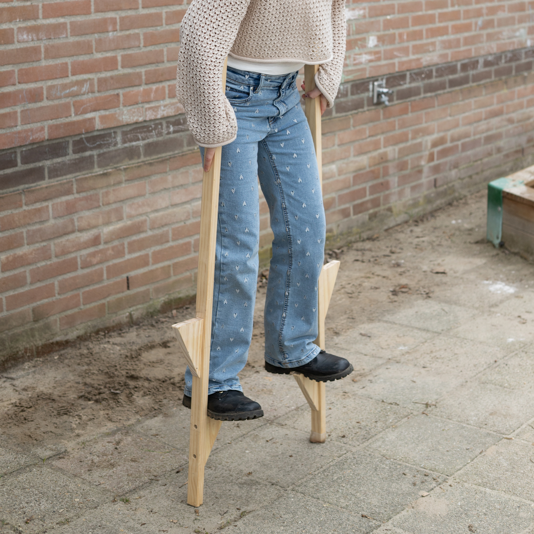 Deze klassieke houten stelten van blank hout stimuleren kinderen om te bewegen, hun balans te vinden en zelfvertrouwen op te bouwen terwijl ze lopen en spelen. Ze sluiten goed aan bij spelactiviteiten waarbij kinderen elkaar uitdagen, elkaar helpen en samen ontdekken wat ze allemaal kunnen. Het lopen op stelten draagt bij aan de ontwikkeling van de motoriek en coördinatie en nodigt uit tot actief spel in de frisse lucht.
