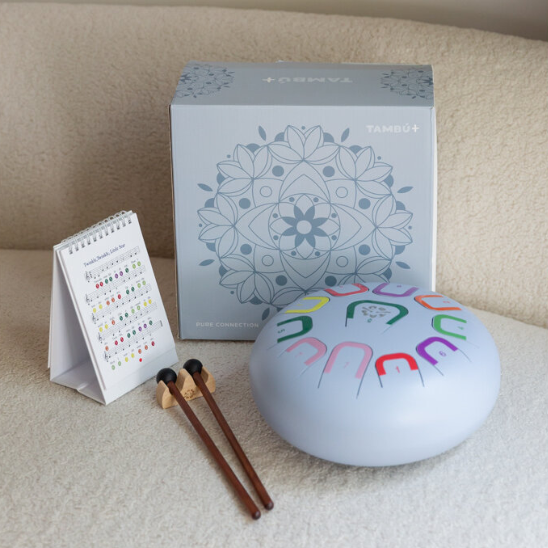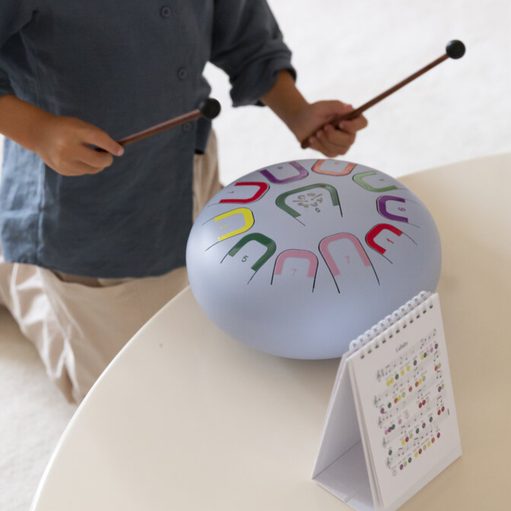 De Tongdrum is een uitnodigend klankinstrument met 11 tonen dat kinderen op een speelse manier laat kennismaken met muziek. De warme, heldere tonen ontstaan vanzelf door zacht te tikken met de handen of met stokken. De robuuste metalen drum is stevig, kindvriendelijk en heeft een zacht blauwe kleur die past in elke groepsruimte. Een muzikale ontdekkingstocht voor de kinderopvang, gastouderopvang of BSO.
