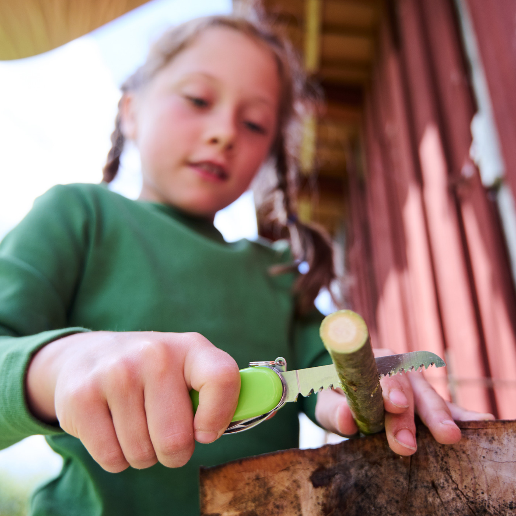 Een robuust en veelzijdig zakmes dat jonge avonturiers helpt om op een verantwoorde manier te leren omgaan met gereedschap tijdens buitenactiviteiten. Dit compacte mes is veilig en functioneel, met een afgeronde punt en een betrouwbaar vergrendelsysteem zodat het blad niet zomaar dichtklapt tijdens gebruik. Het ergonomische handvat ligt prettig in de hand, kinderen kunnen er takjes mee snijden, touw doorknippen of kleine klusjes uitvoeren. Een leuke aanvulling op de BSO.