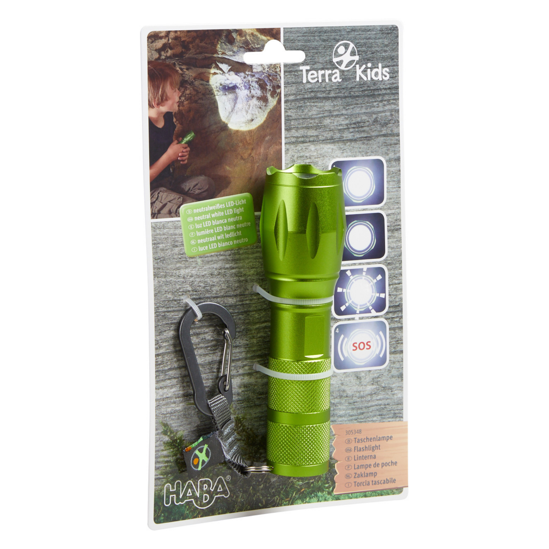 De Terra Kids zaklamp van HABA is een robuuste en kindvriendelijke zaklamp die jonge ontdekkers helpt om ook in het donker veilig op avontuur te gaan. De zaklamp heeft meerdere lichtstanden, twee verlichtingsniveaus en knipperlicht. Dit BSO speelgoed is bestand tegen een stootje en met de meegeleverde karabijnhaak gemakkelijk ergens aan te bevestigen.