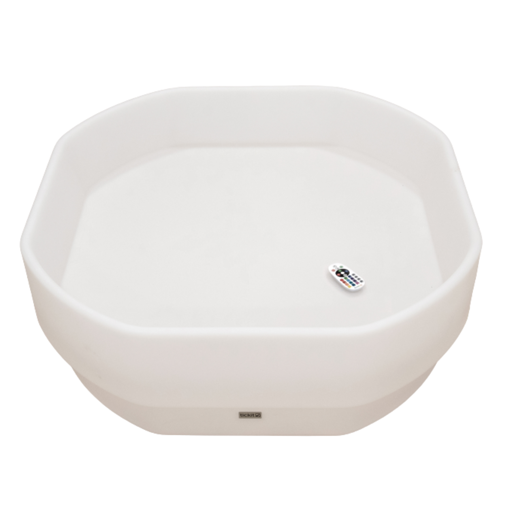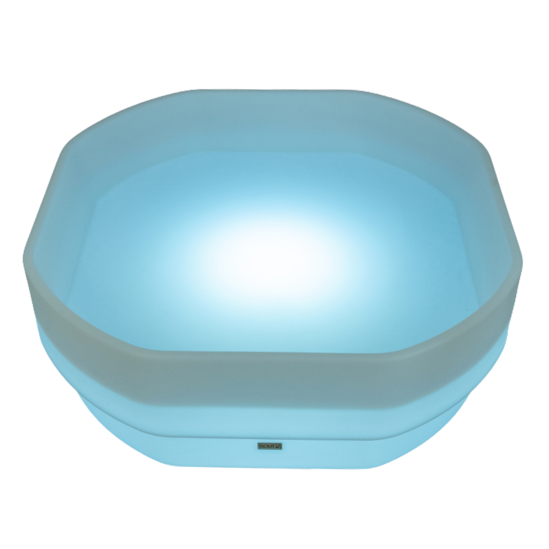Met behulp van de afstandsbediening kan de tafel worden verlicht met een zachte gloed van veranderende kleuren. De ontdektafel heeft een opstaande rand aan de buitenrand waardoor hij gevuld kan worden met water, gelei, schuim, zand of doorschijnende voorwerpen voor een leuke manier om vormen, licht en kleur te ontdekken door middel van rommelig spel.