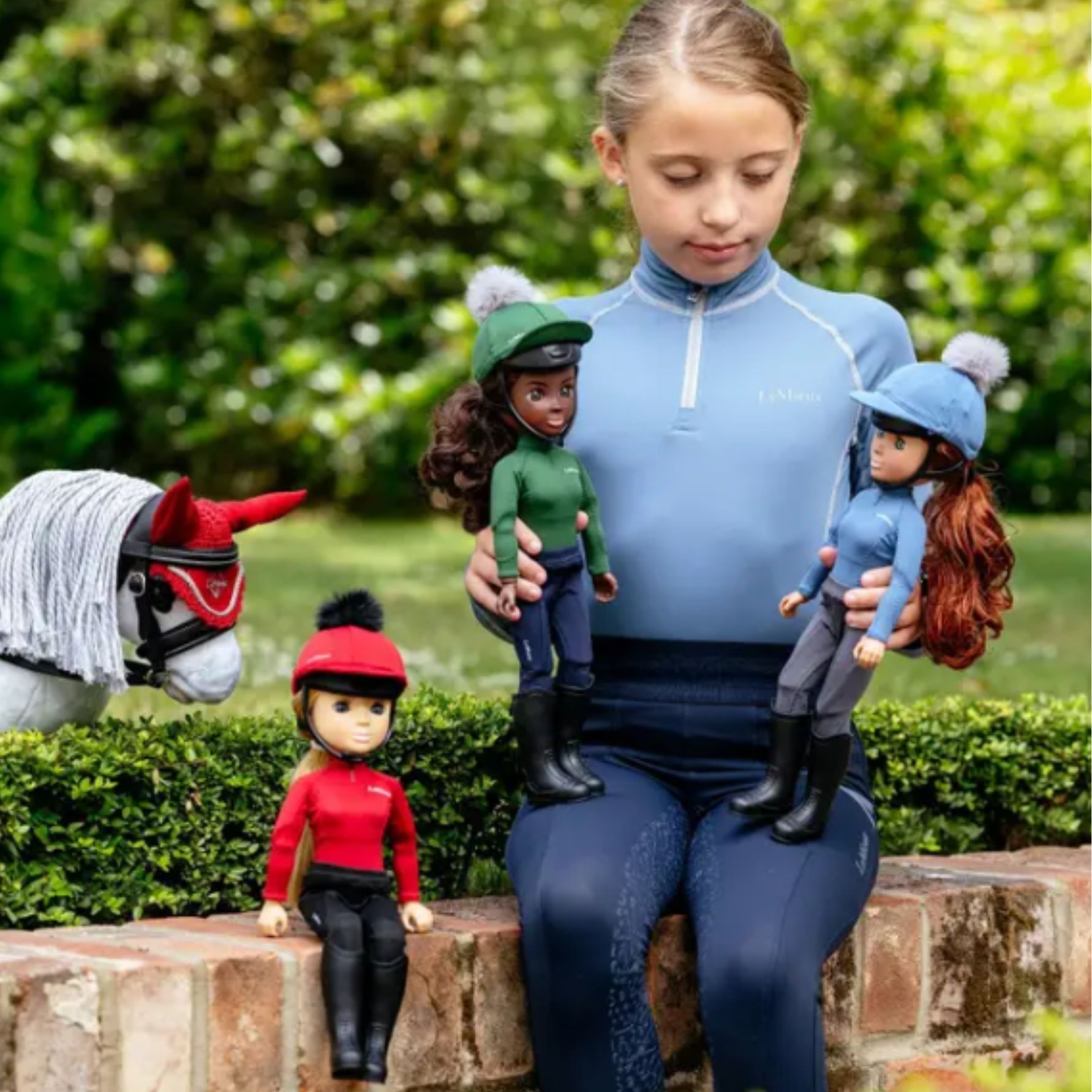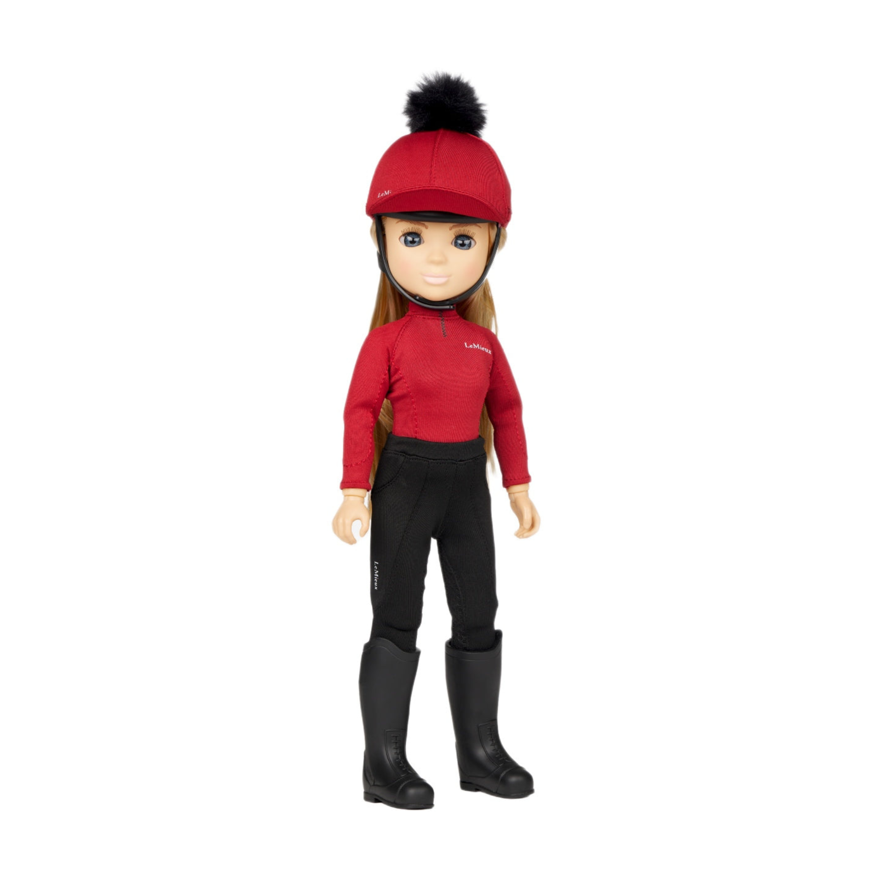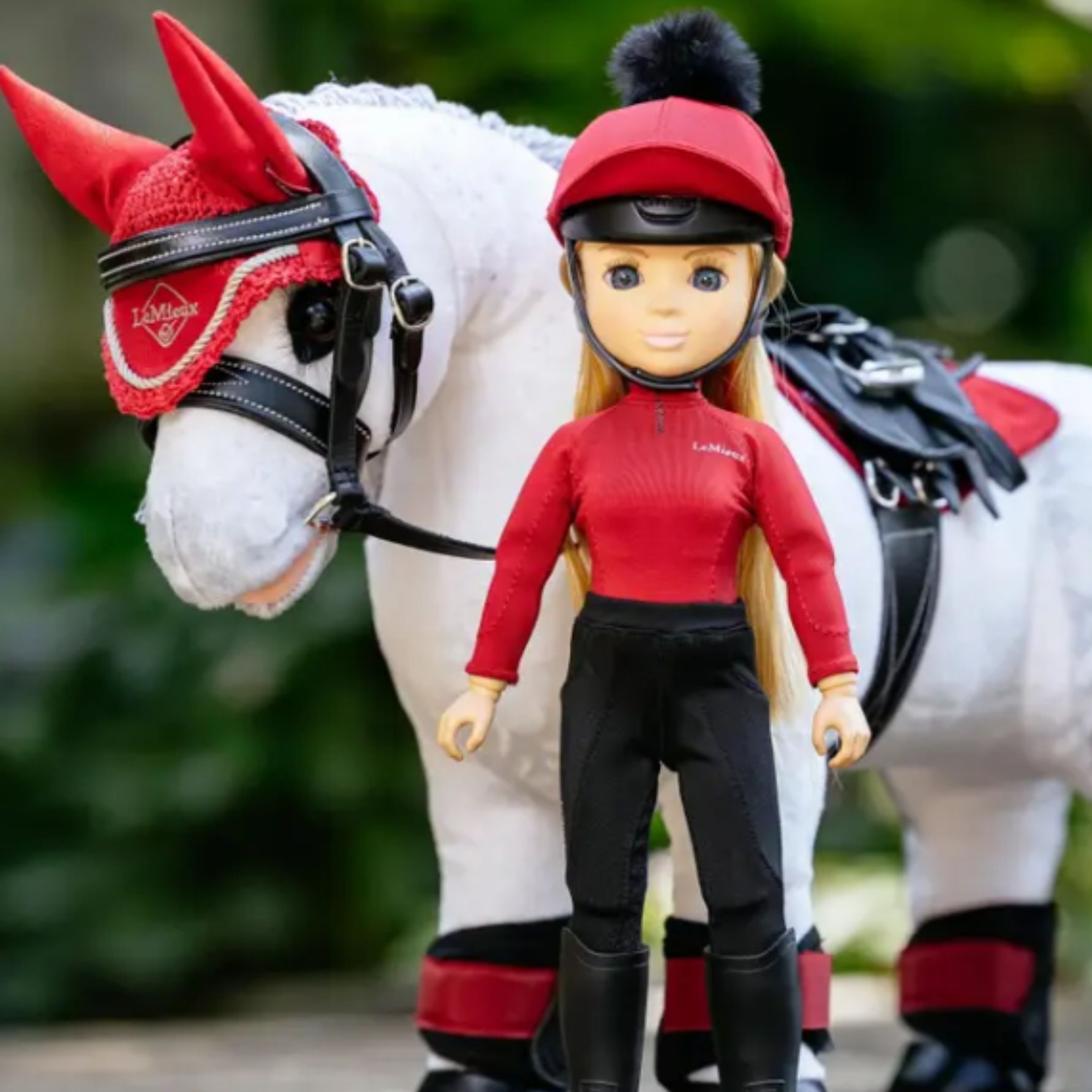 Rider Chloe is een van de drie interactieve volledig beweegbare, hoogwaardige speelgoedruiters met een unieke uitstraling en bijpassende outfit in een van de LeMieux-kernkleuren. Ze heeft prachtig, echt aanvoelend lang kastanje bruin haar dat je kunt borstelen en ook natuurlijke wimpers. Ze draagt een set afneembare replica LeMieux-rijkleding in Chili Red, inclusief een afneembare cap en laarzen.